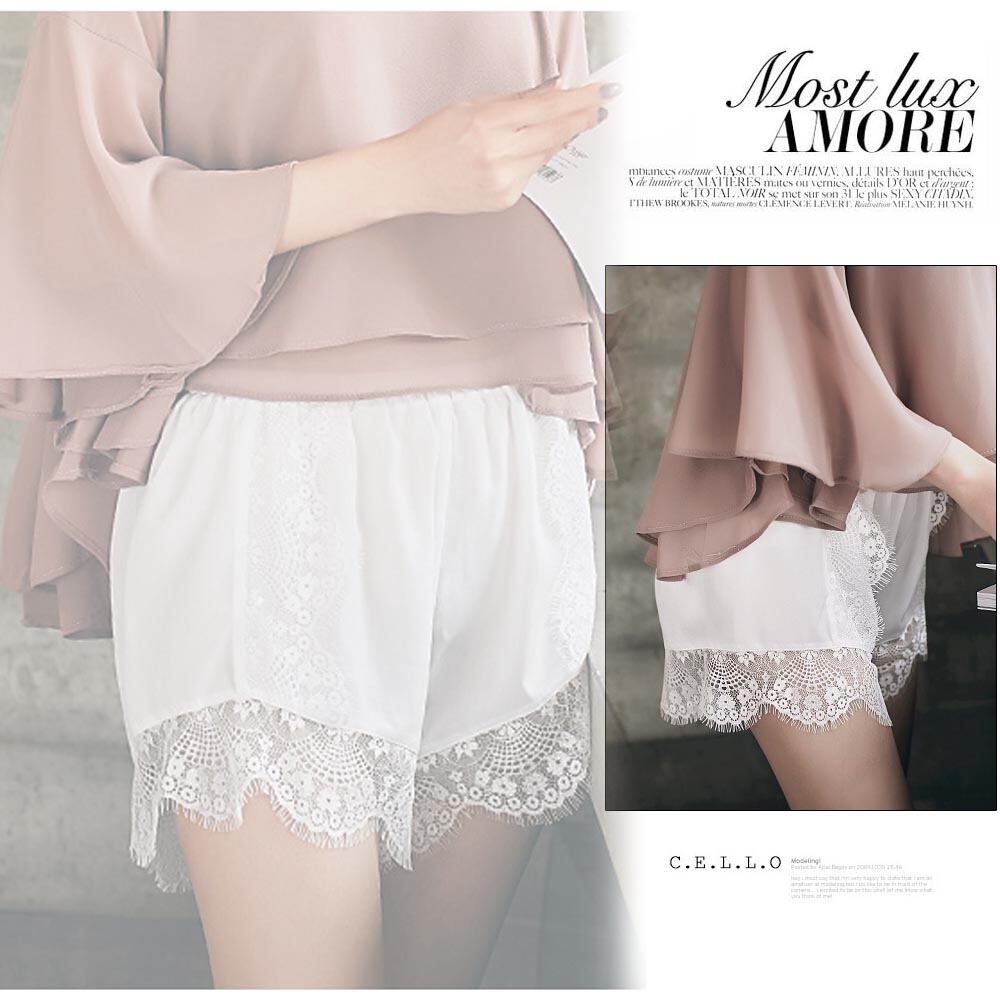 ショートパンツやミニスカートの下から見えても可愛いレース切り替え仕様