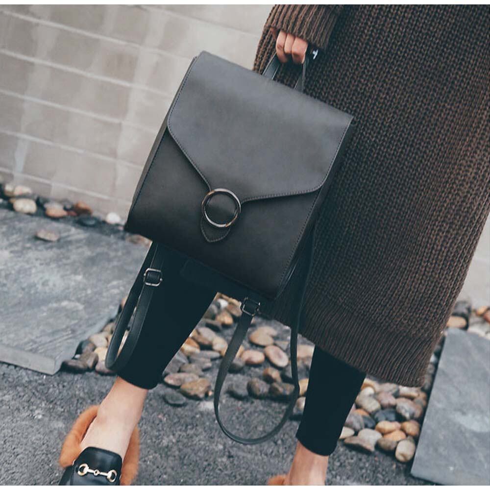 スタイリッシュなリング金具がおしゃれなスクエア型かぶせリュックサック