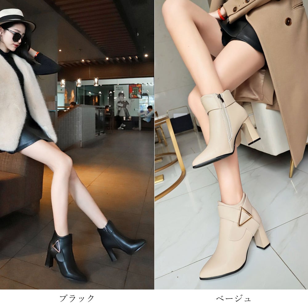 女性らしさを際立てるすっきりとしたデザイン、スッキリ脚長スタイルの美脚ショートブーツ