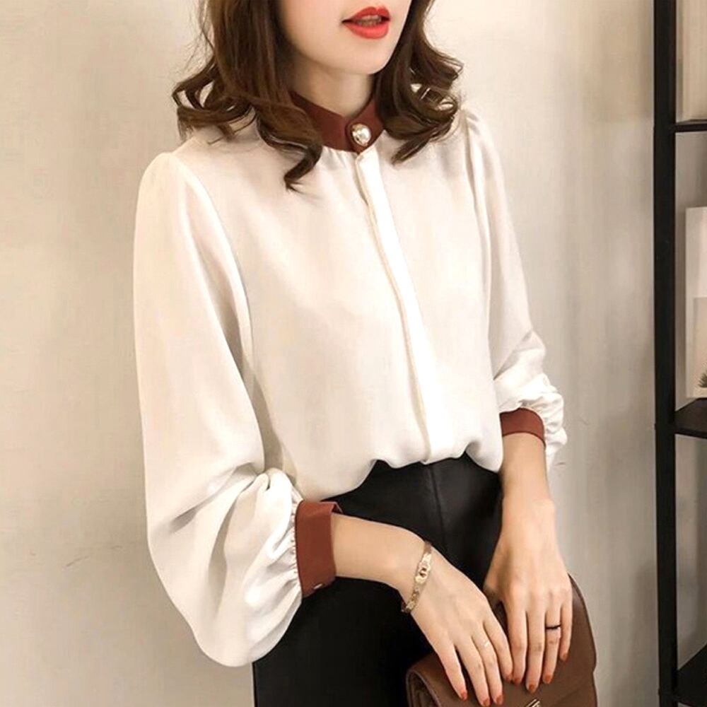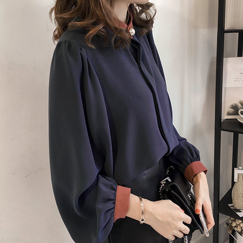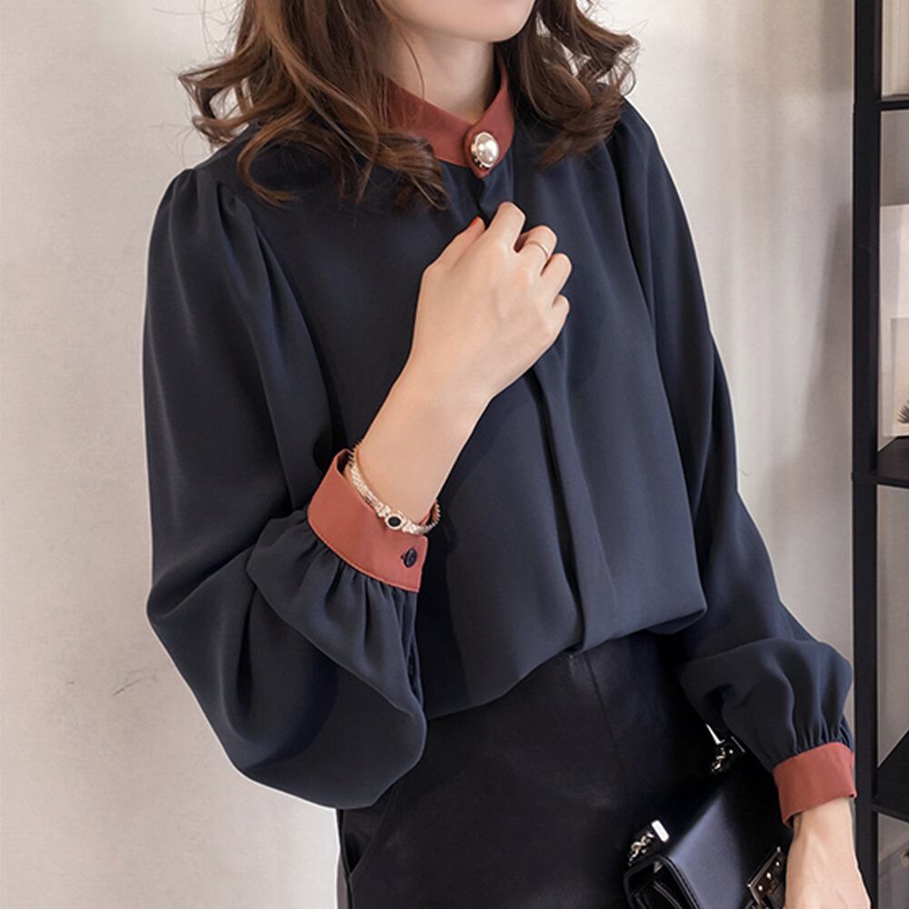 上品でフェミニンなオトナ女子を演出できるスタンドカラーシフォンブラウス