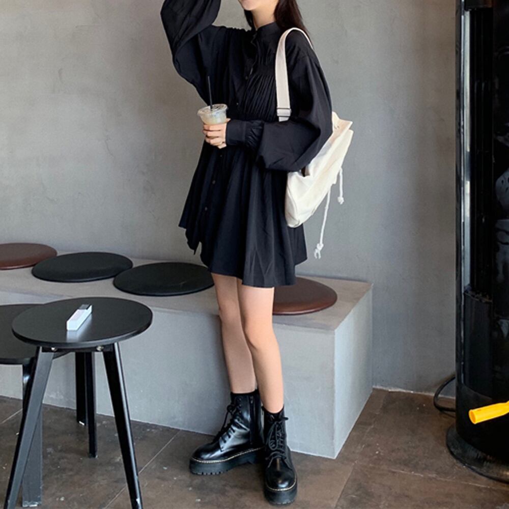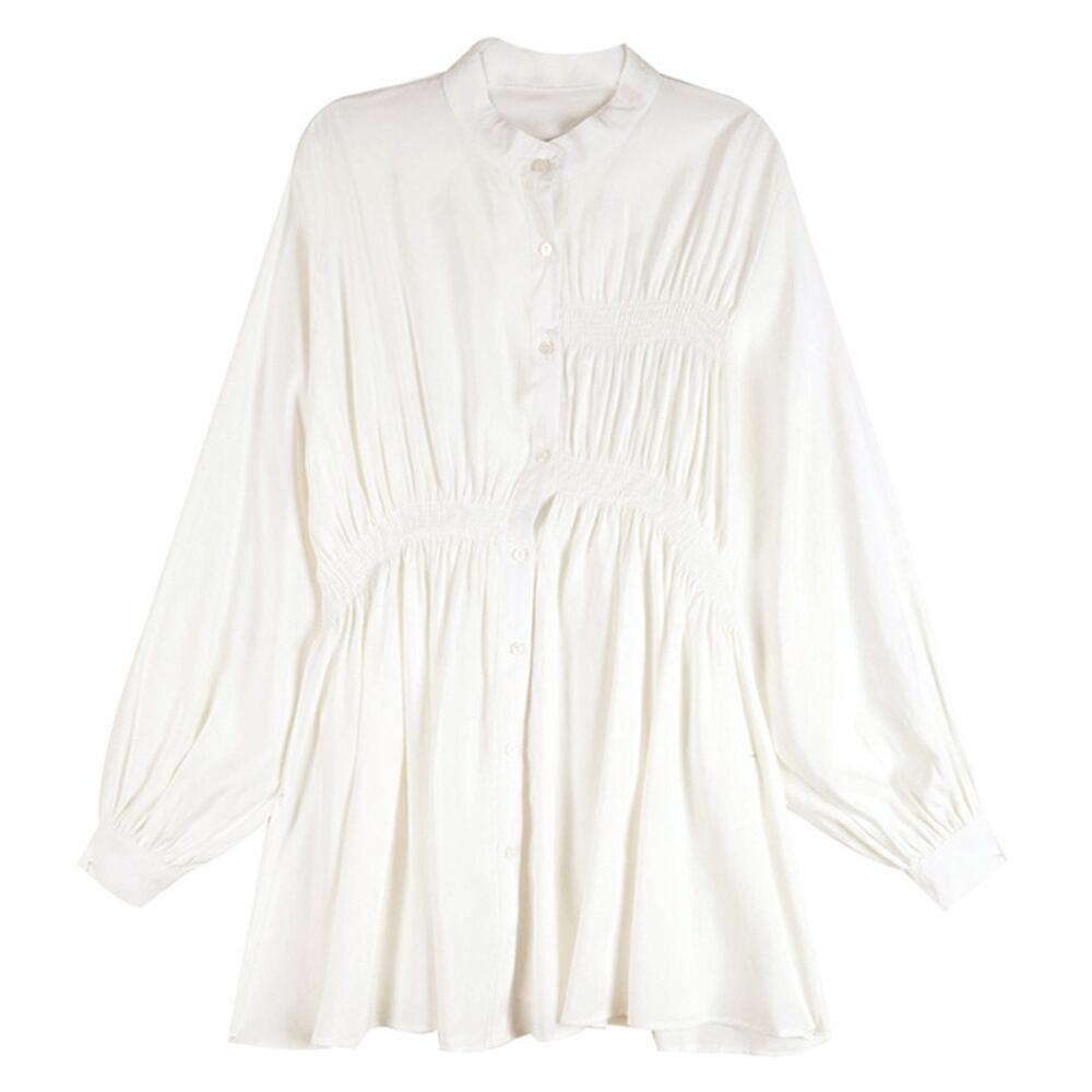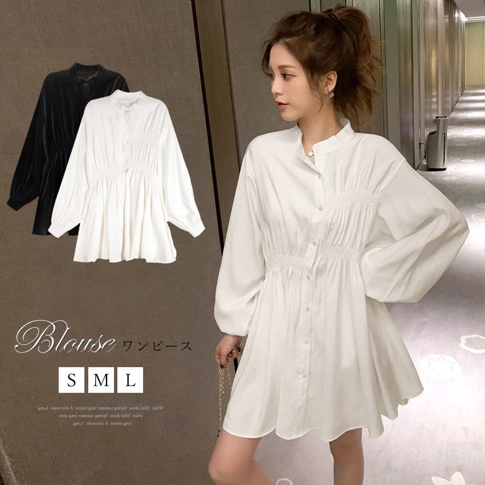 柔らかな風合いで肌触りの良い生地のAラインミニ丈フレアブラウスワンピース