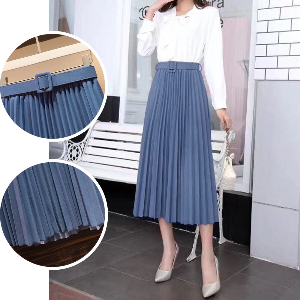 取り外し可能の同色ベルト付き、普段着としてはもちろん、きちんとしたオフィスシーンにも活躍できるきれいめなスカート