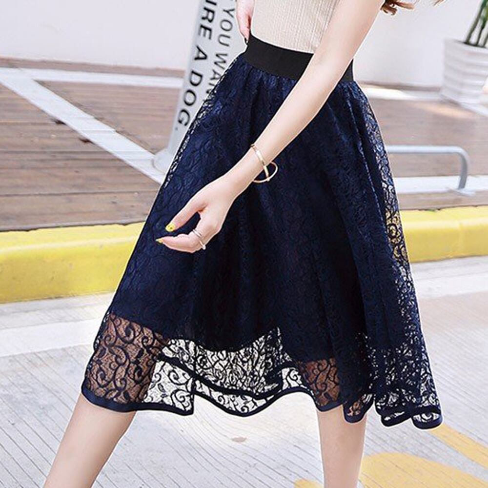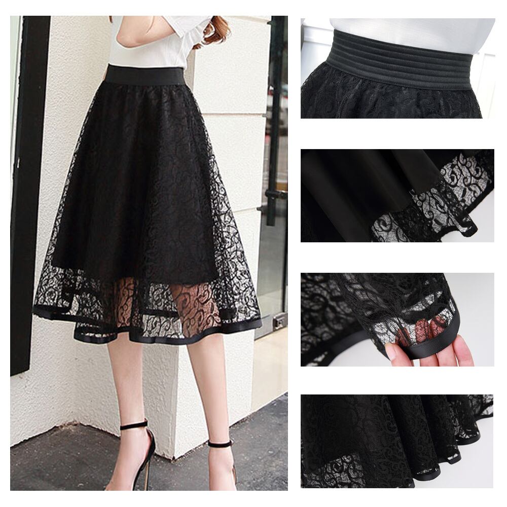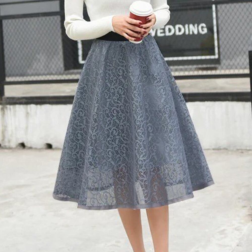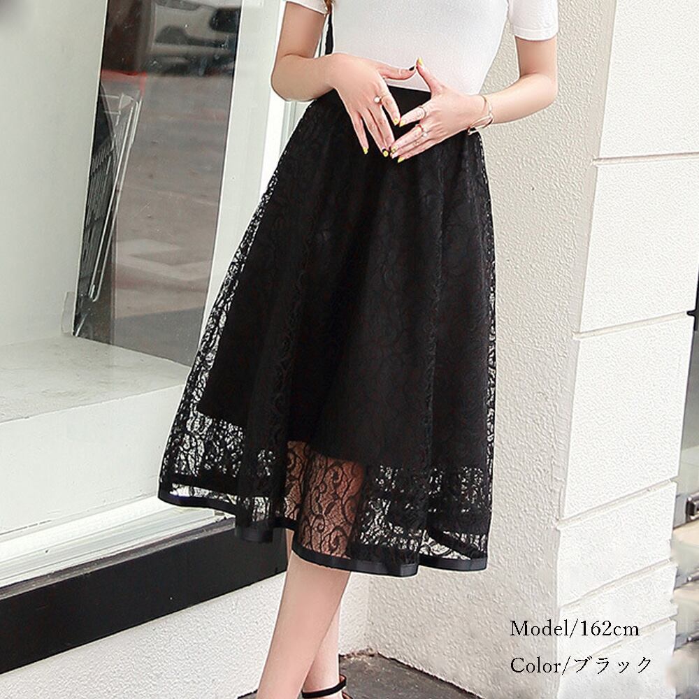 アラベスクデザインのレースが上品な印象を与える、レデイライクなフレアスカート