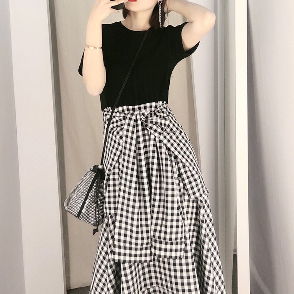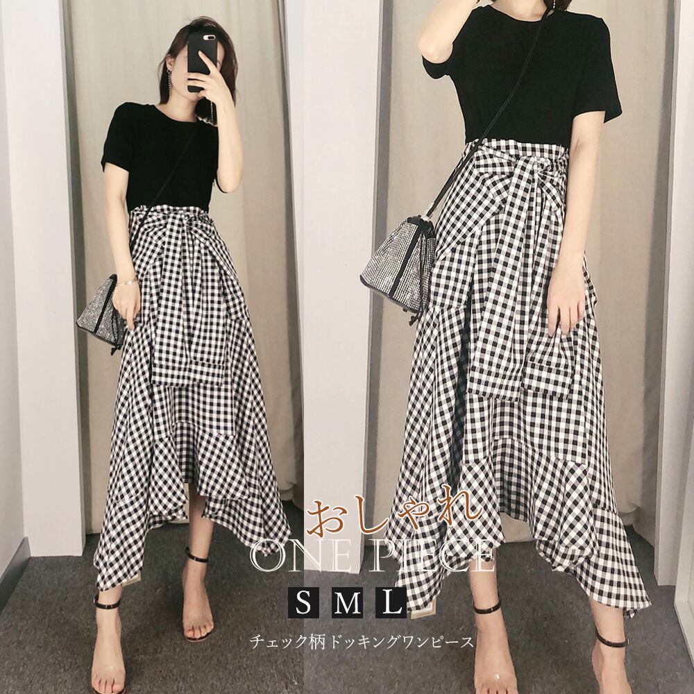 一枚でコーディできるチェック柄ドッキングワンピースです