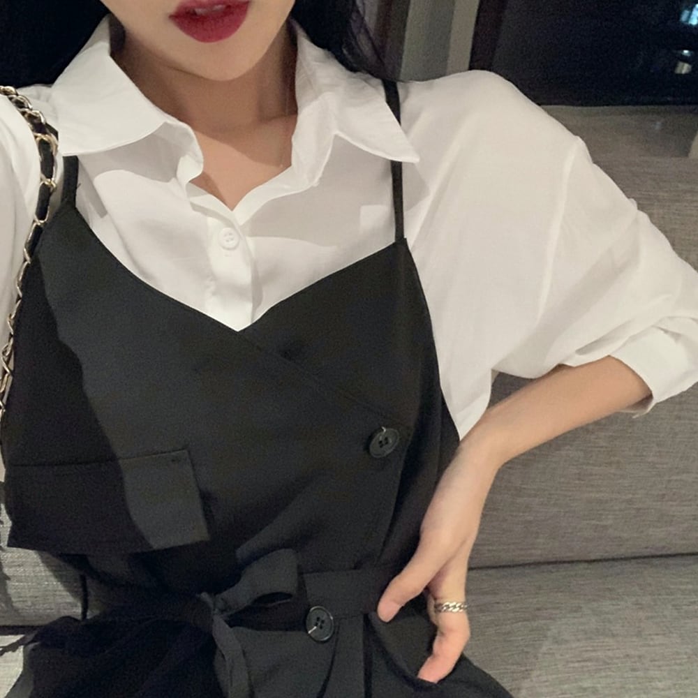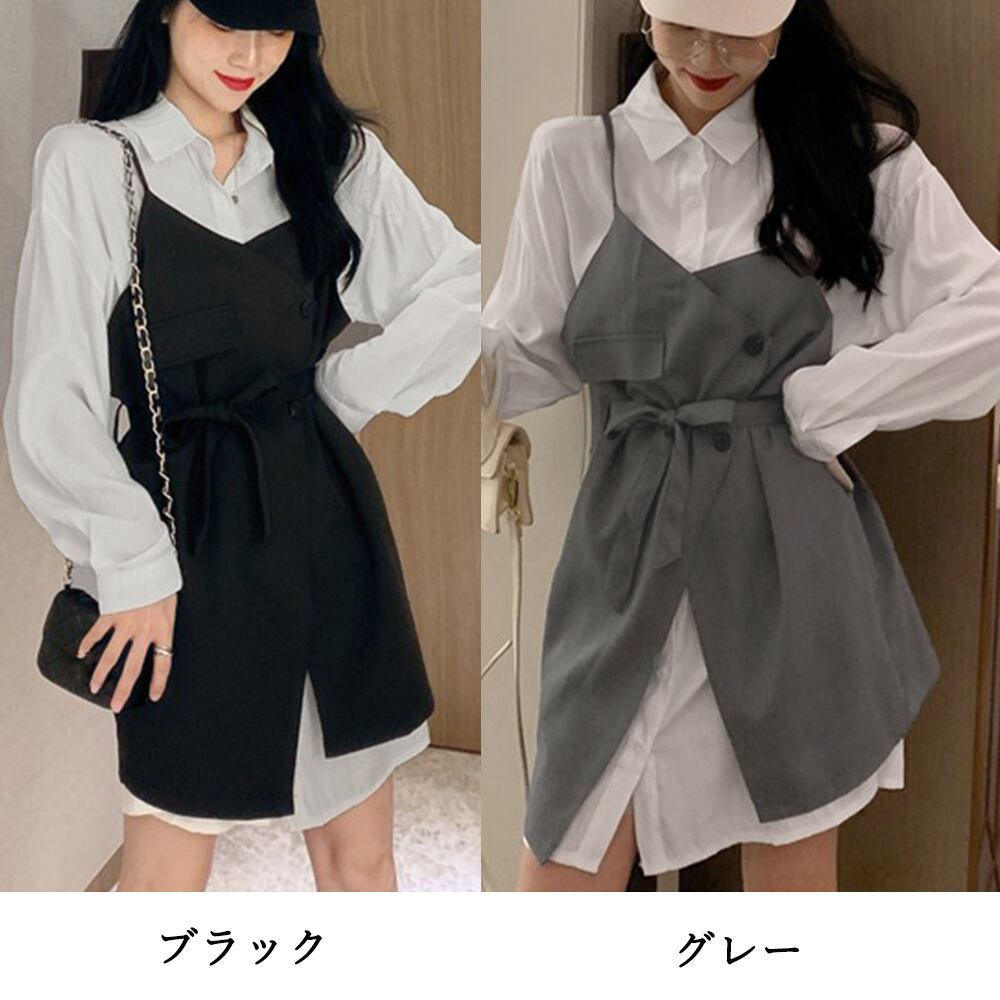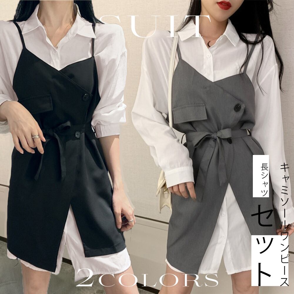アシンメトリーなキャミソール+シャツワンピース2点セット