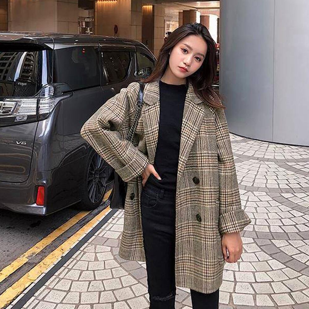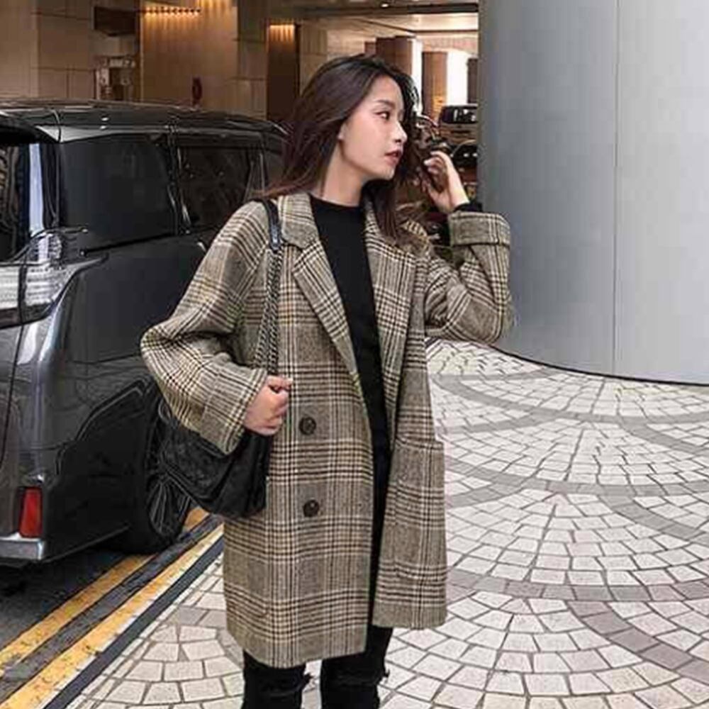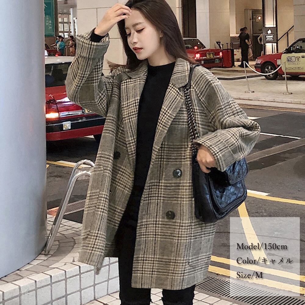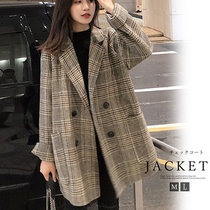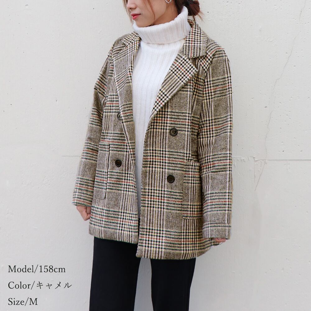 チェックの総柄がカジュアルながらもテーラードカラーがキチンと感を演出してくれて秋冬の大人カジュアルなコーデにぴったり
