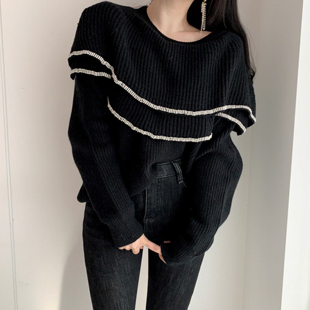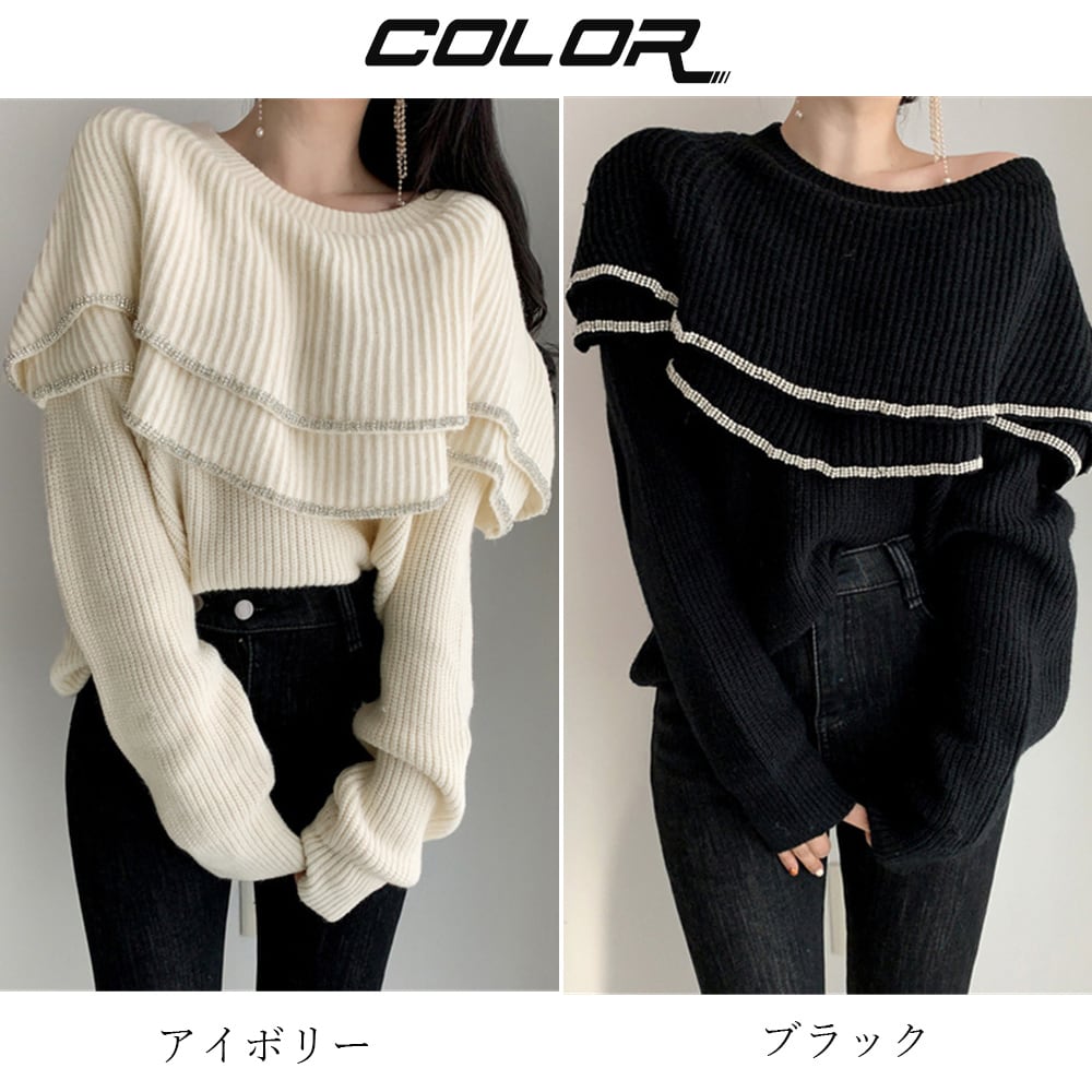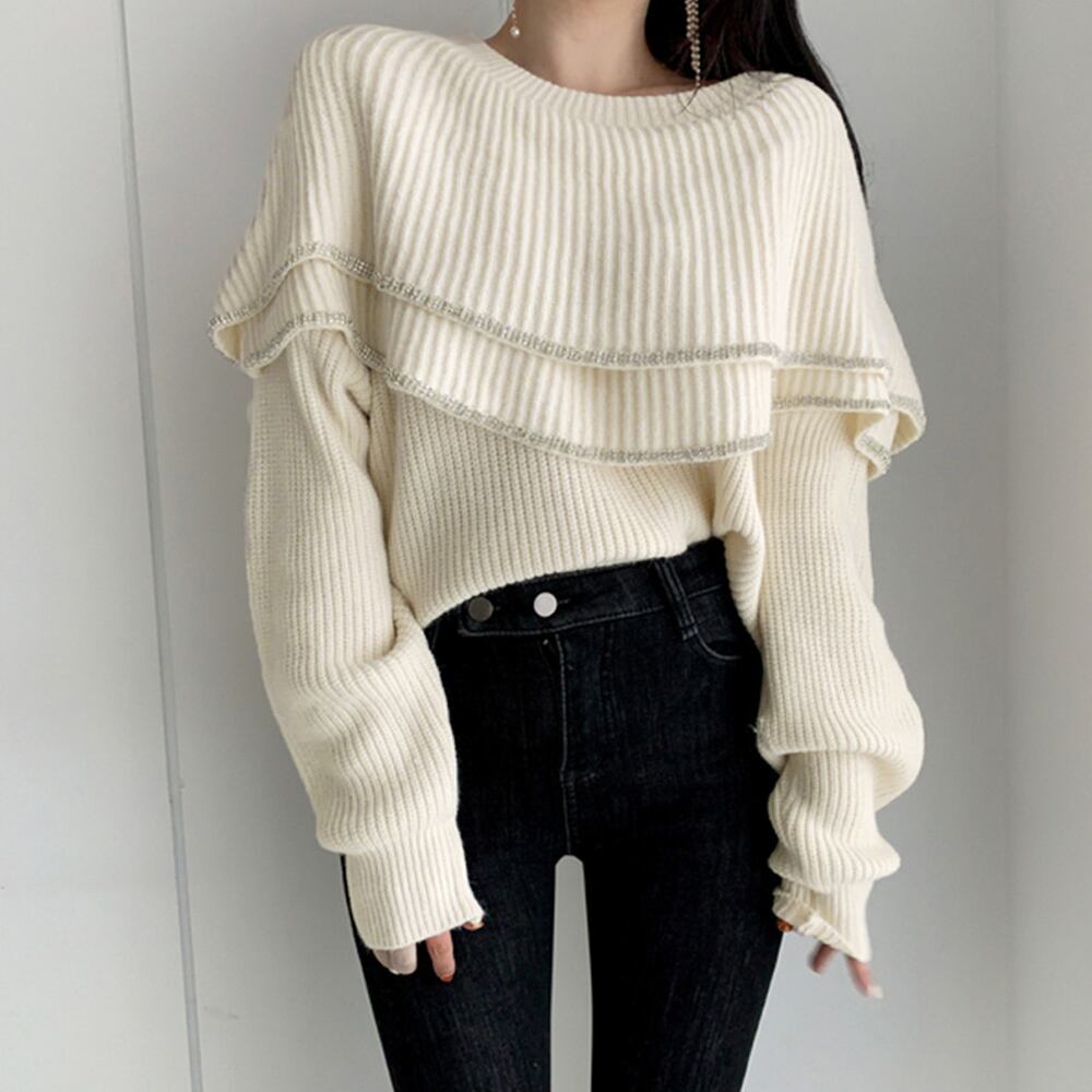 ボリュームたっぷりでコーディネートの主役になるフリルニットセーター