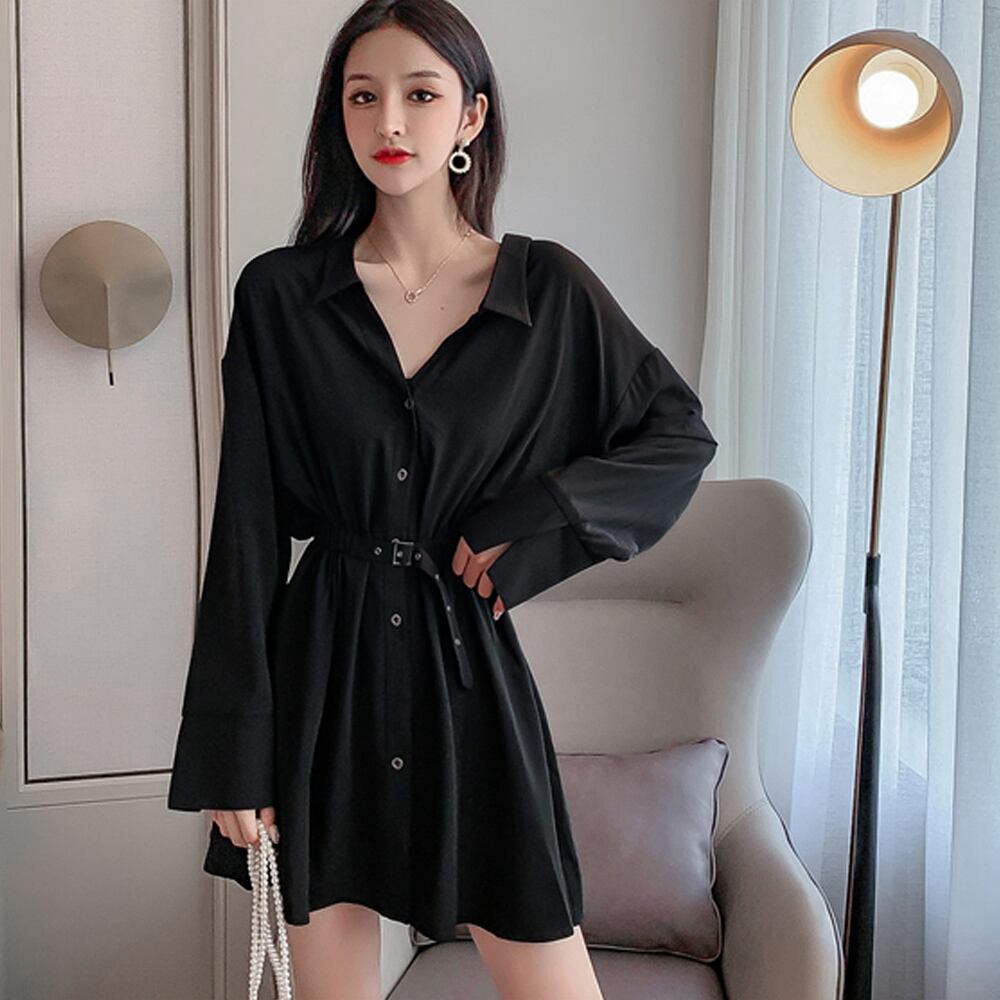 春にぴったりな大人かわいいウエストマーク黒ミニワンピース
