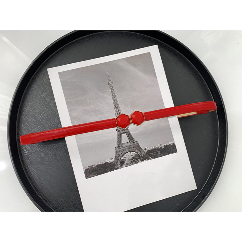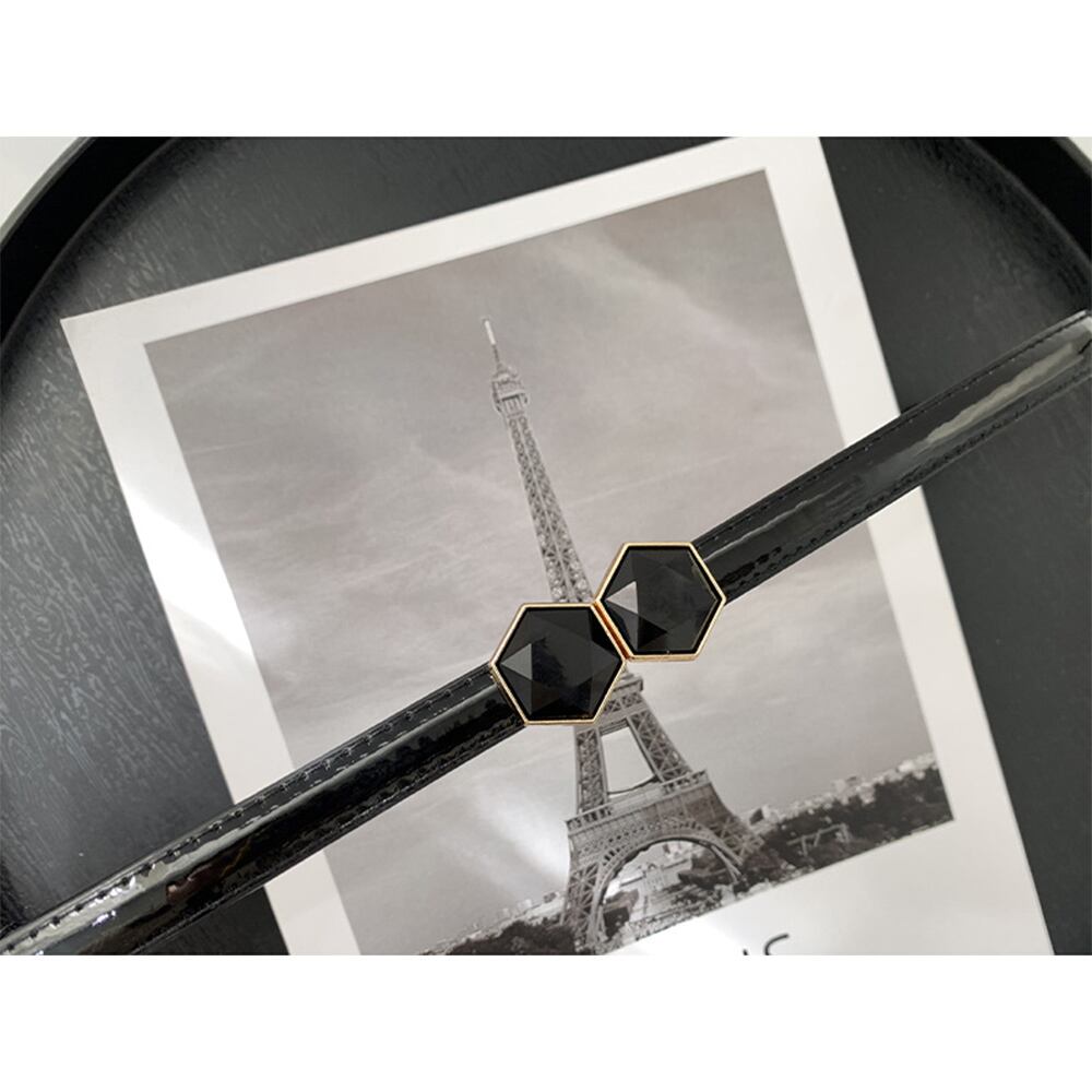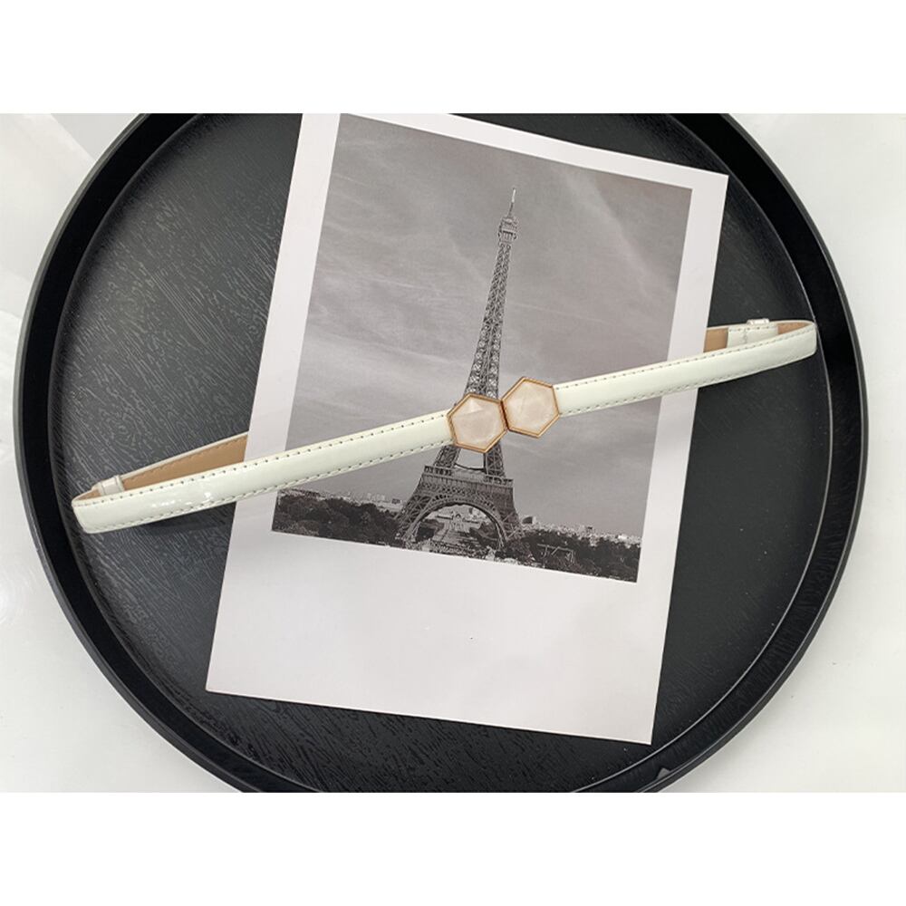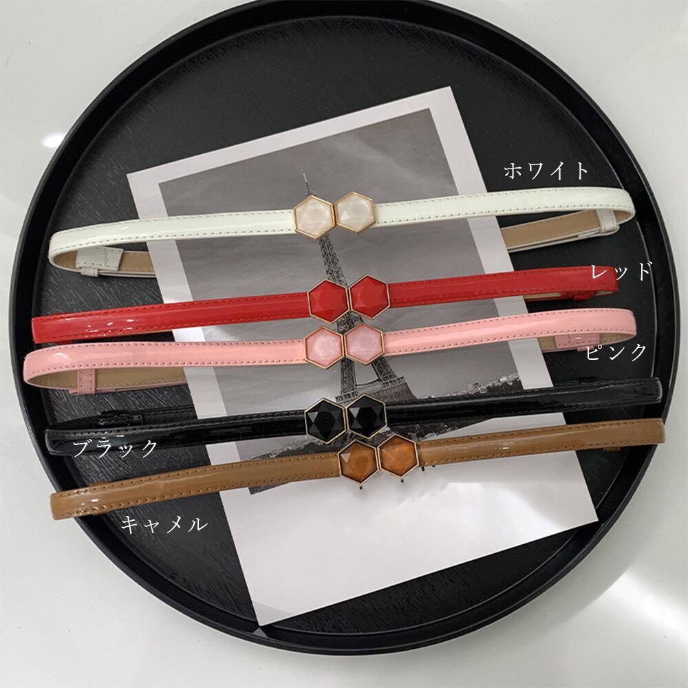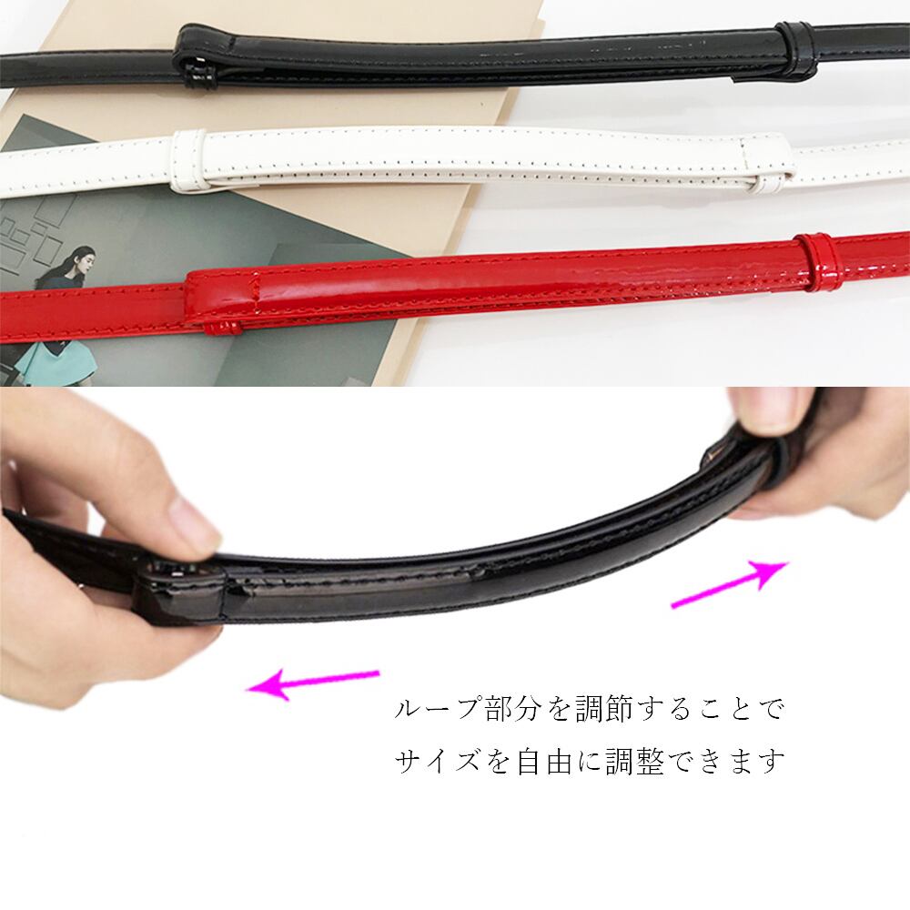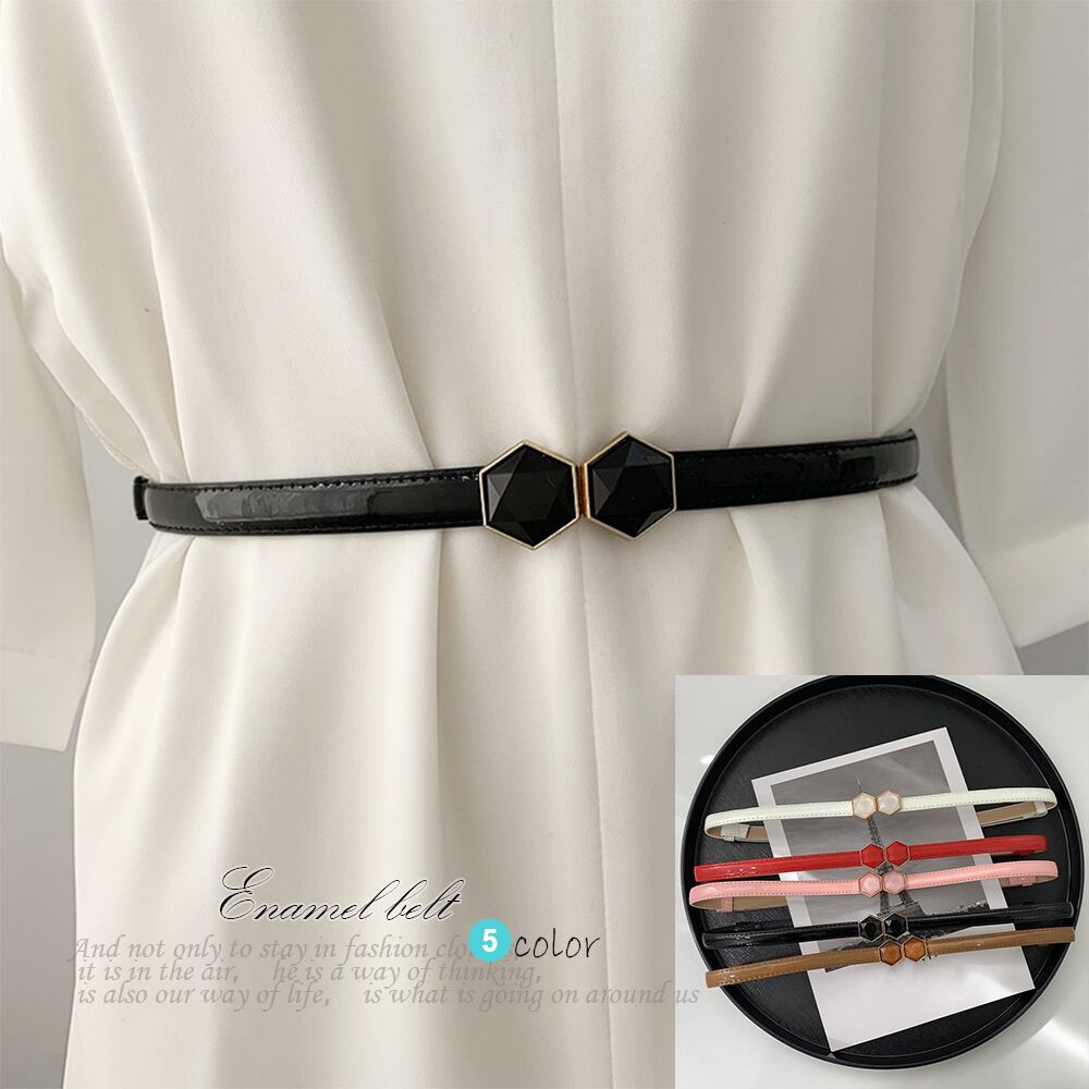 シンプルなデザインで上品な大人っぽい雰囲気を演出する高級感のあるエナメルベルト
