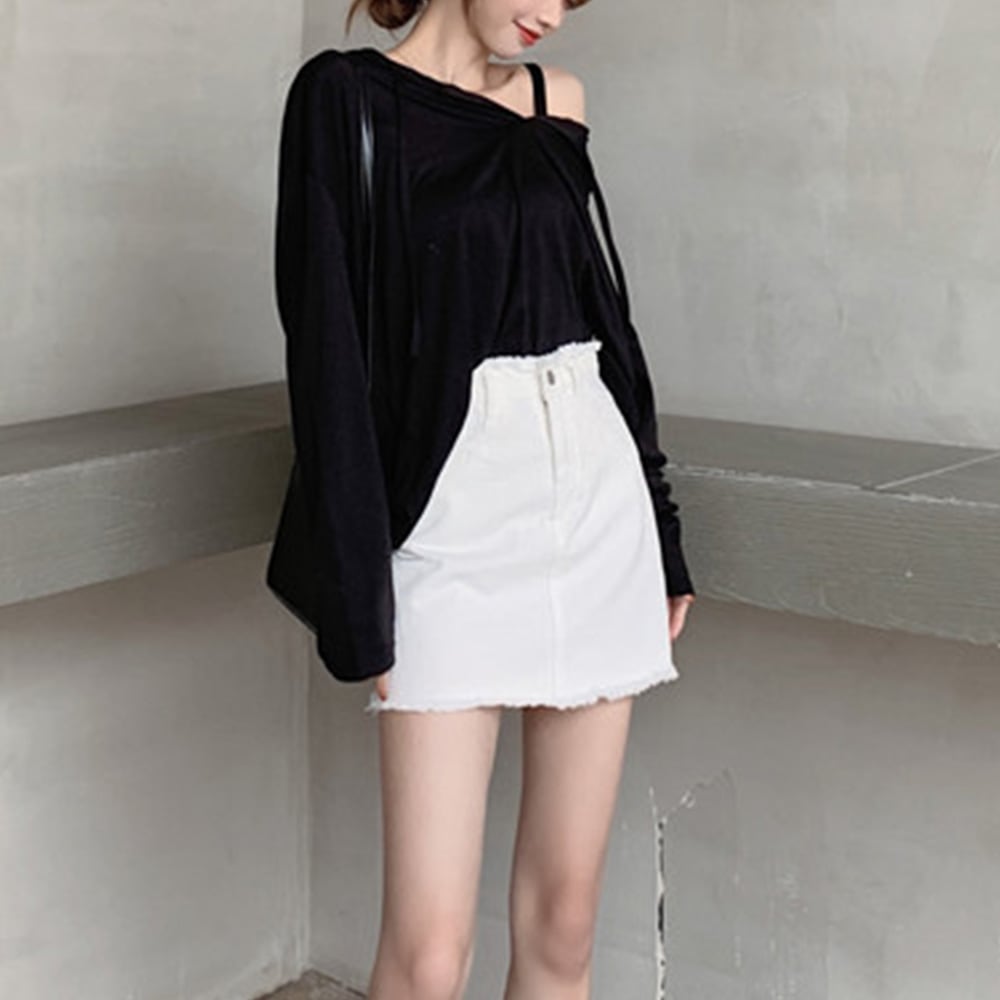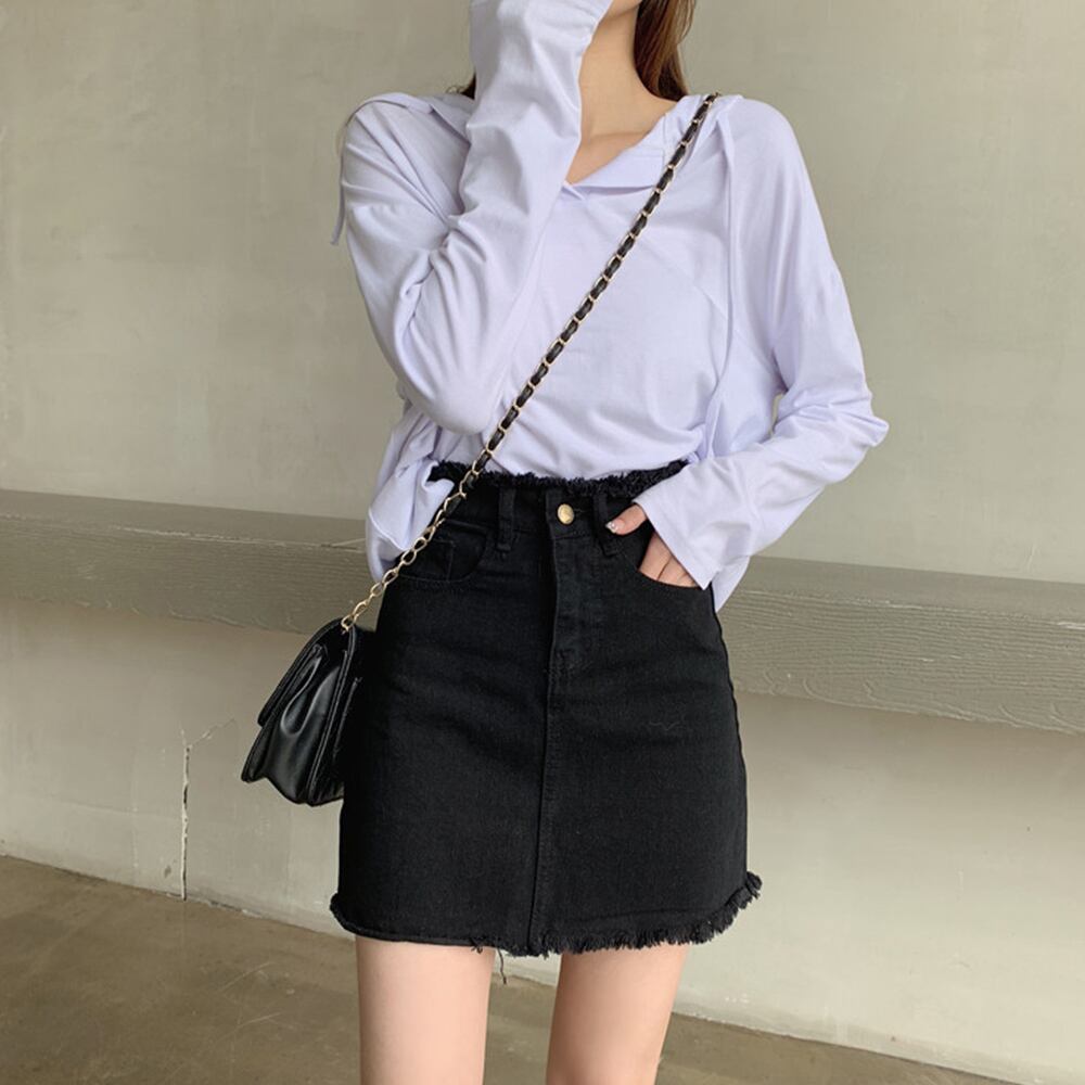 カットオフデザイン&ポケット付き、活発な印象で爽やかに可愛らしくきまる