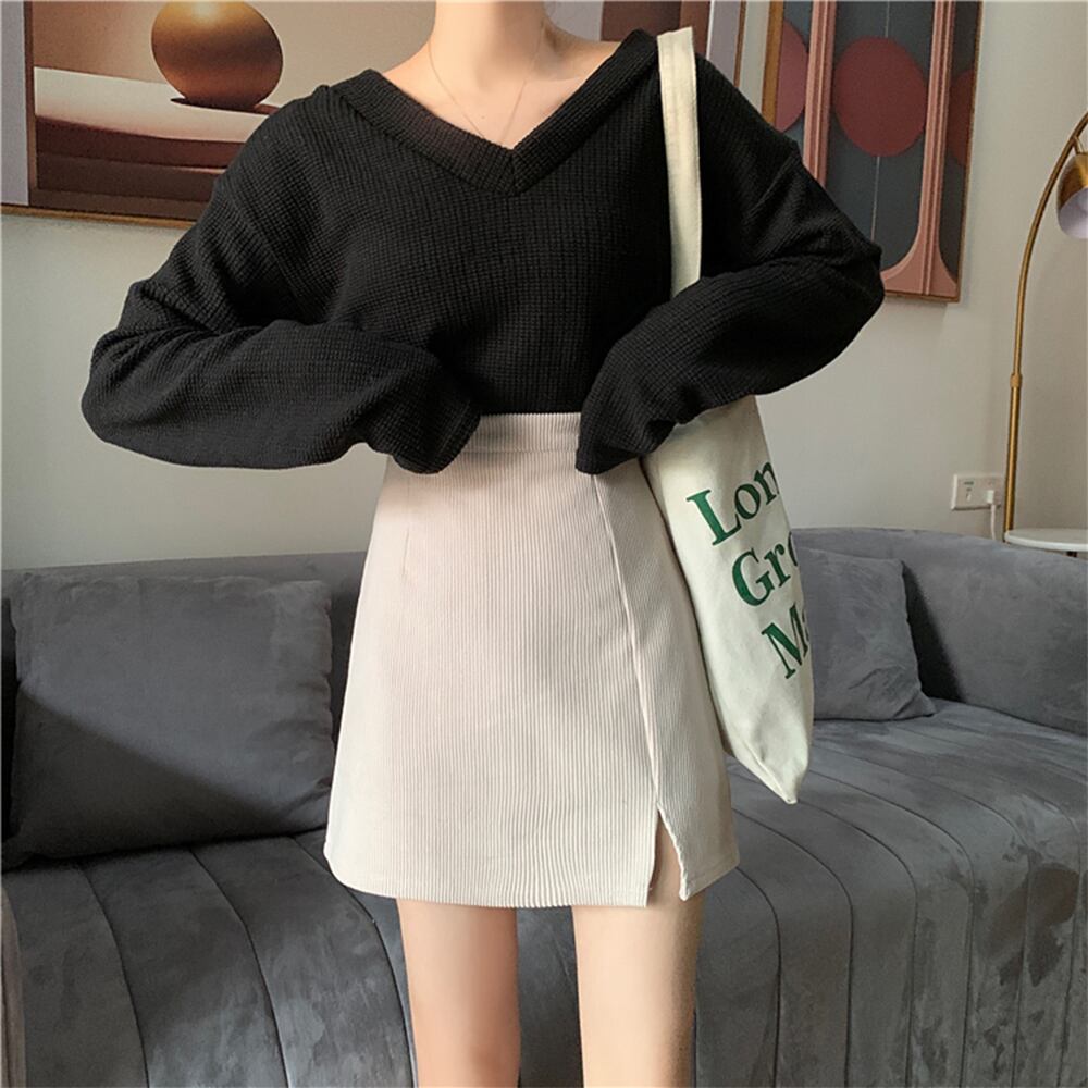 コーデュロイ素材で季節感たっぷりに仕上げたスカート