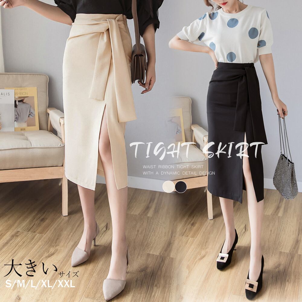 動きのあるディテールデザインが魅力のウエストリボンタイトスカート