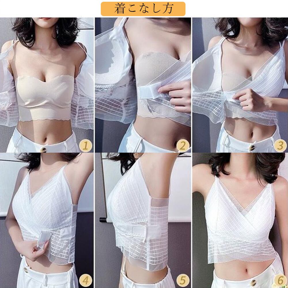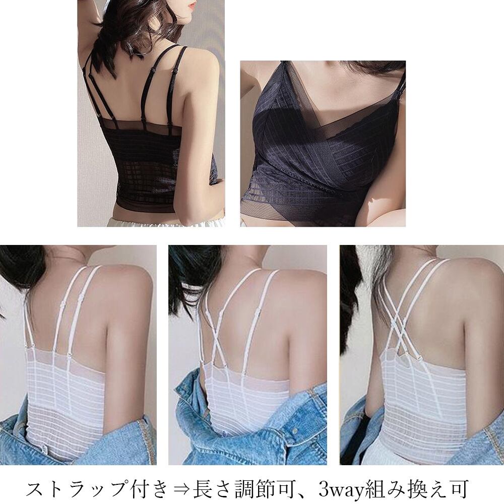 Vネックなのでデコルテを美しく魅せてくれるパッドカップ付きチュールキャミソール