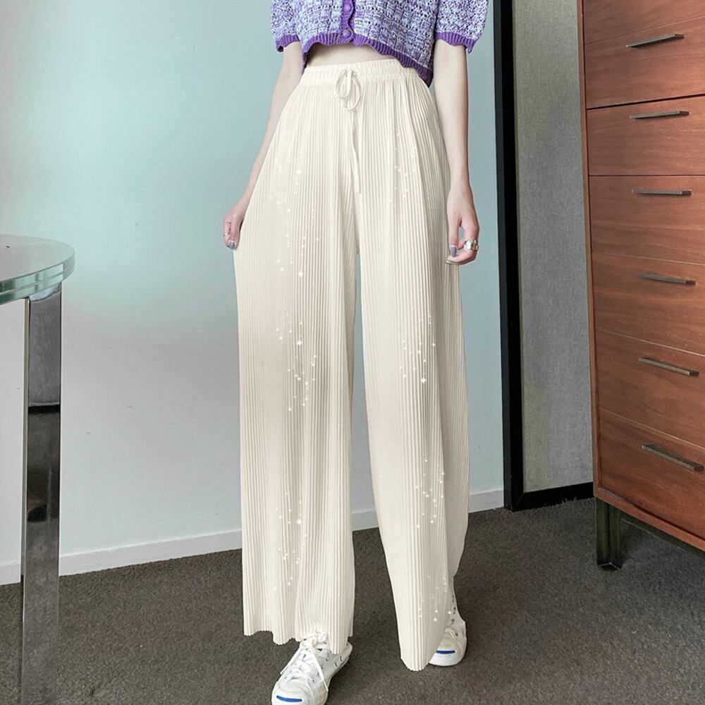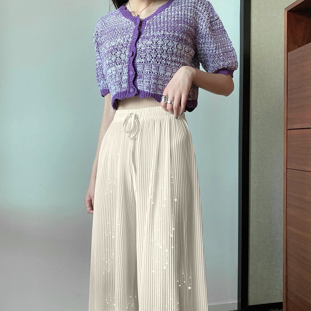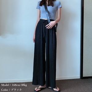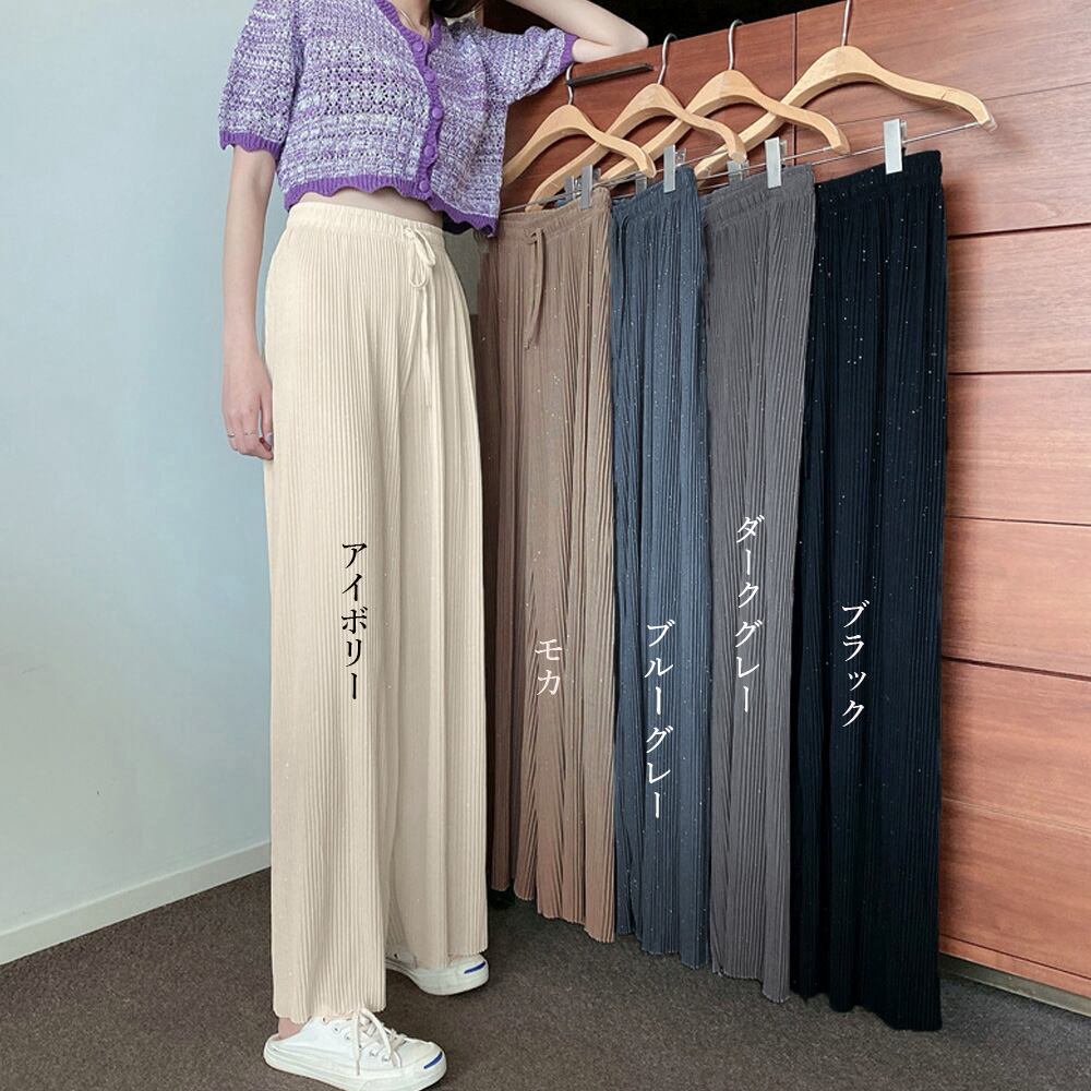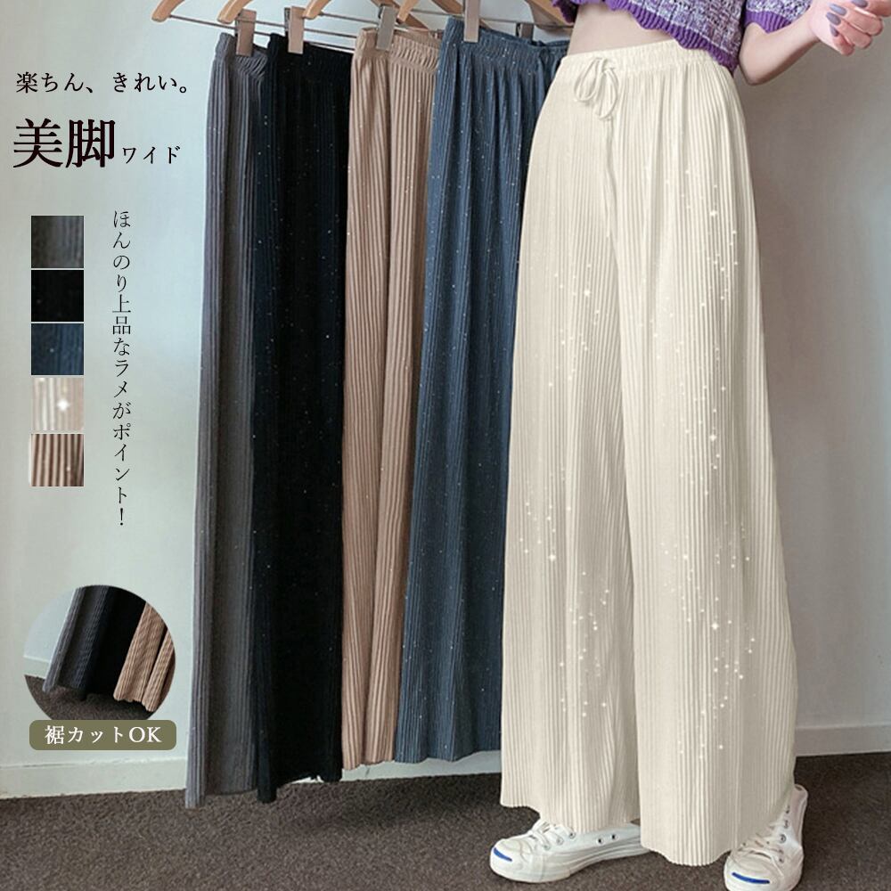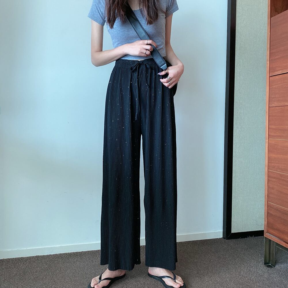 歩く度にひらひら揺れるしなやかなラメ付き生地で仕上げたリラクシースタイルのプリーツパンツ