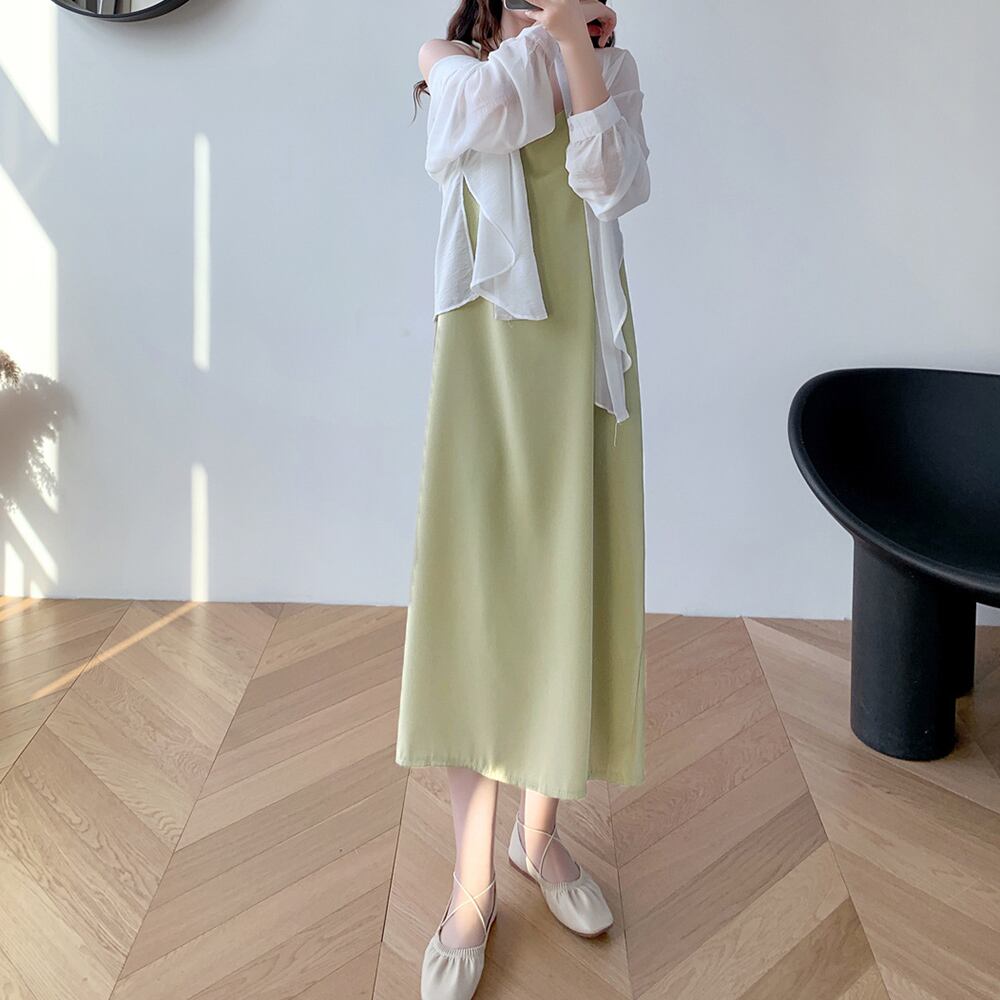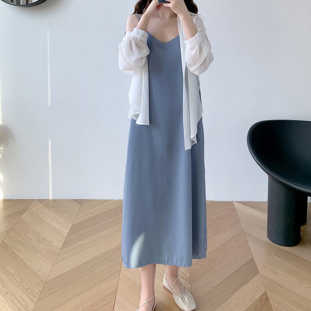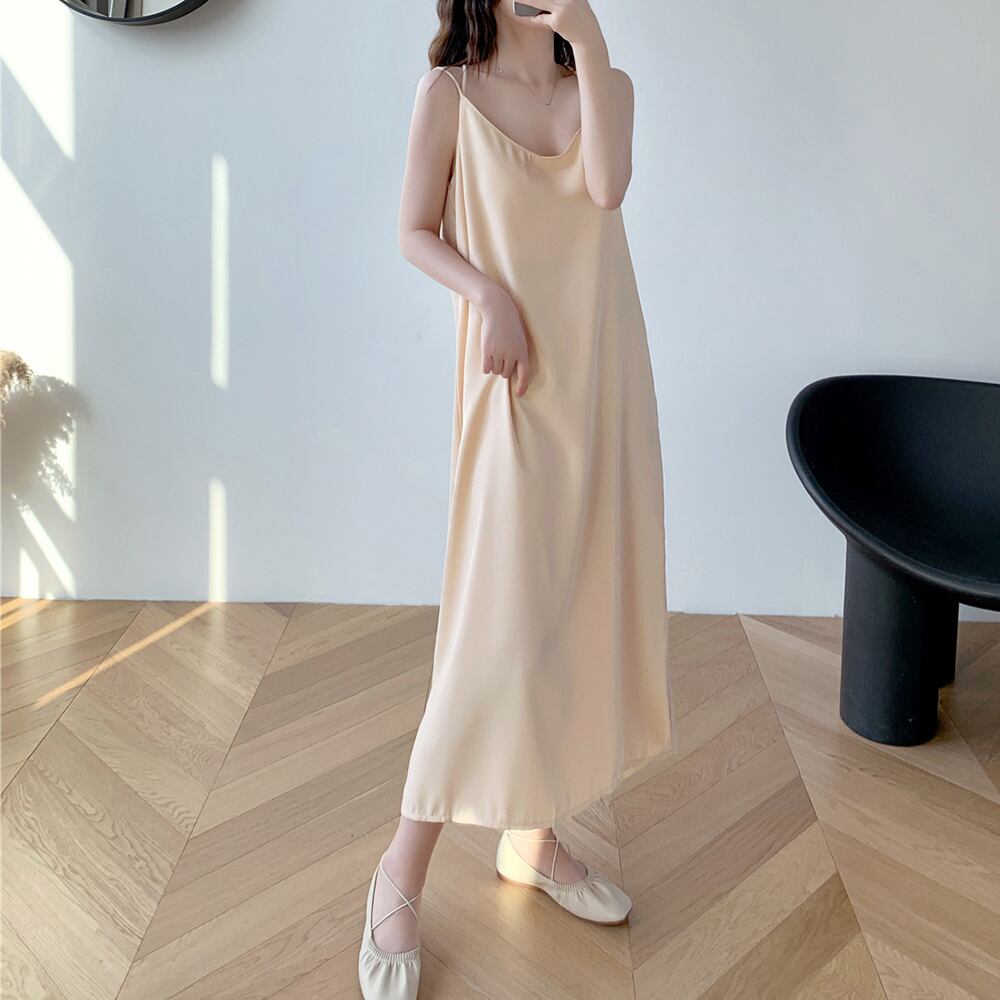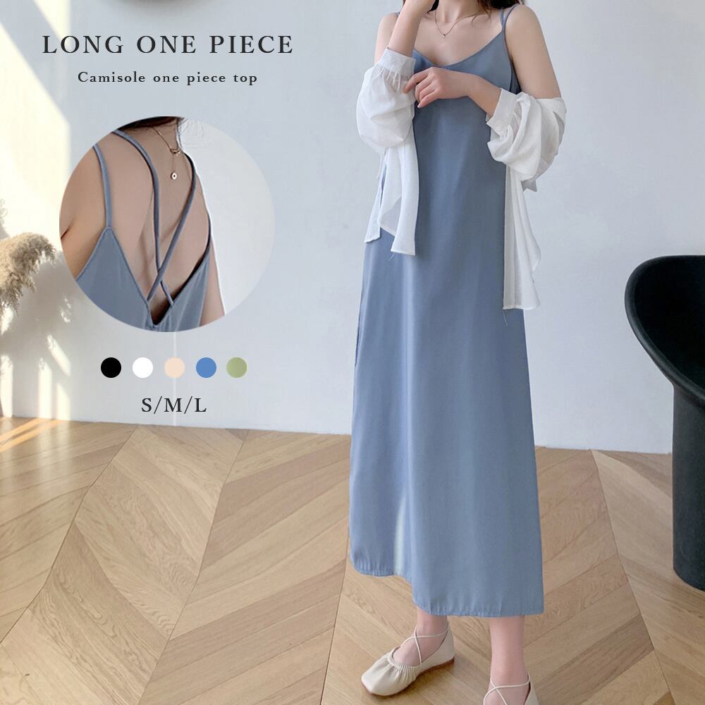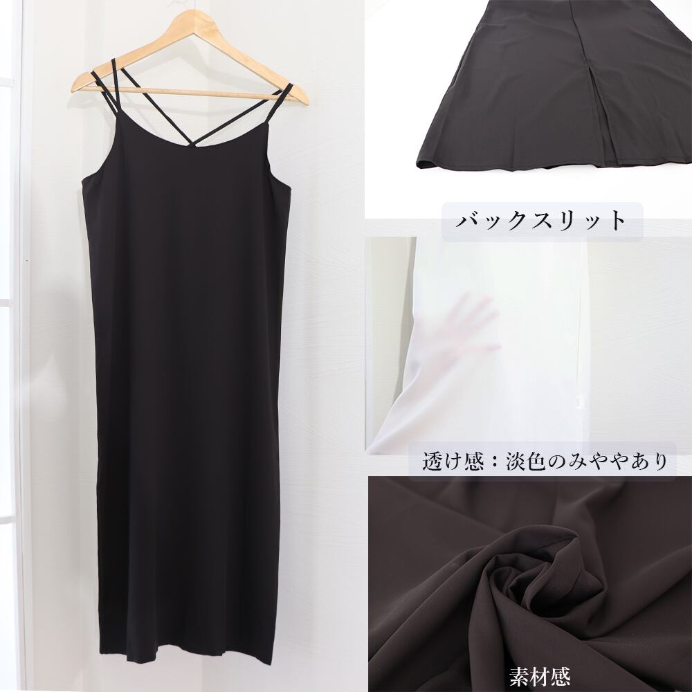 シンプルなシルエットで着回し力が高いバッククロスキャミソールワンピース