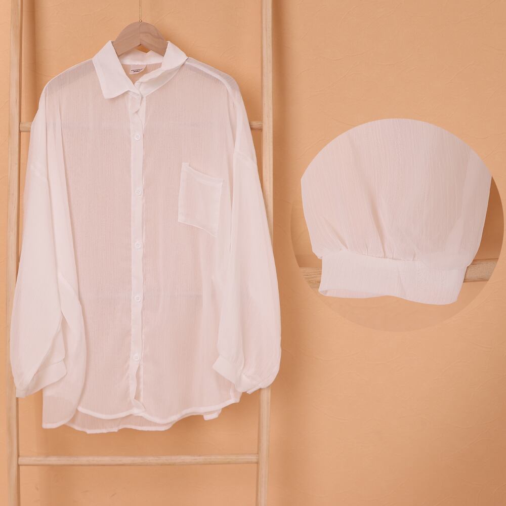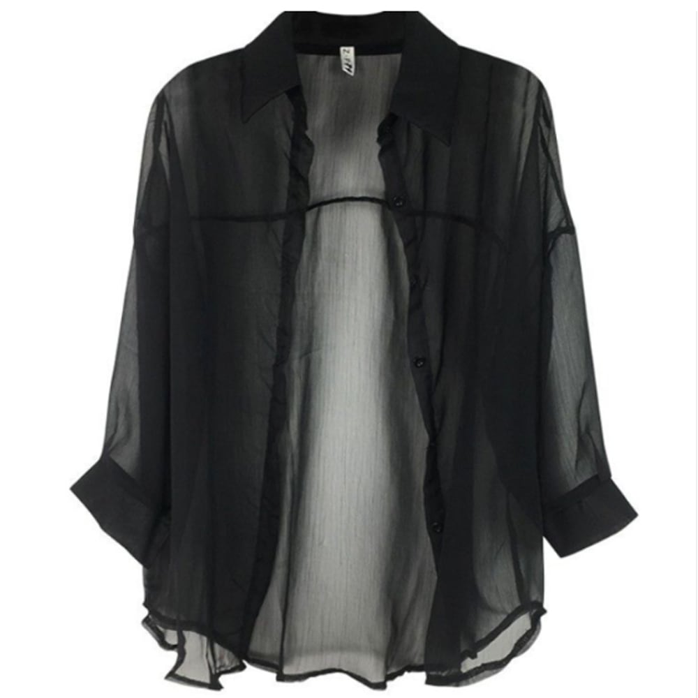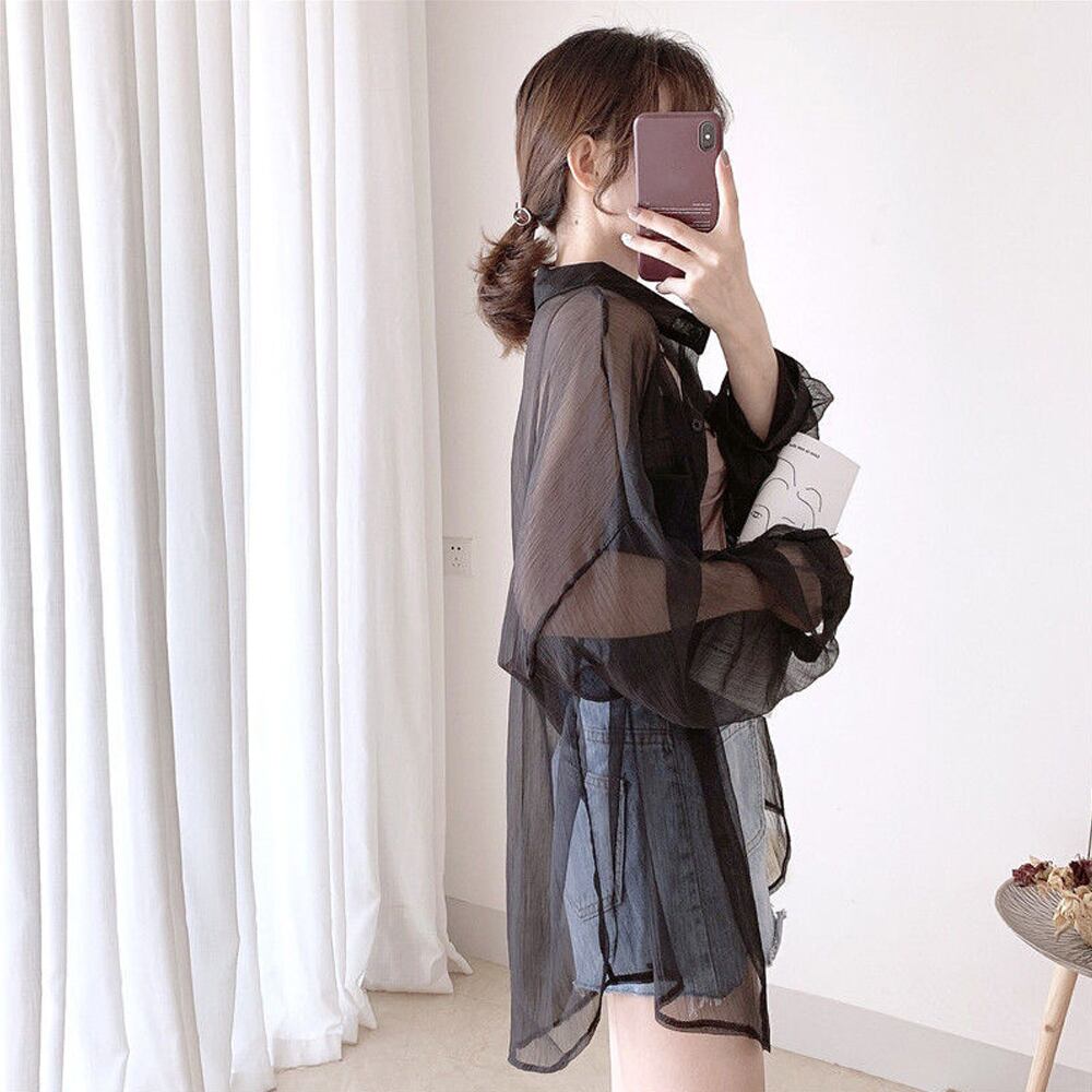 ほんのり透け感のあるシフォン生地で、女性の優しさをアピールのシアーシャツブラウス