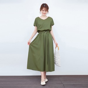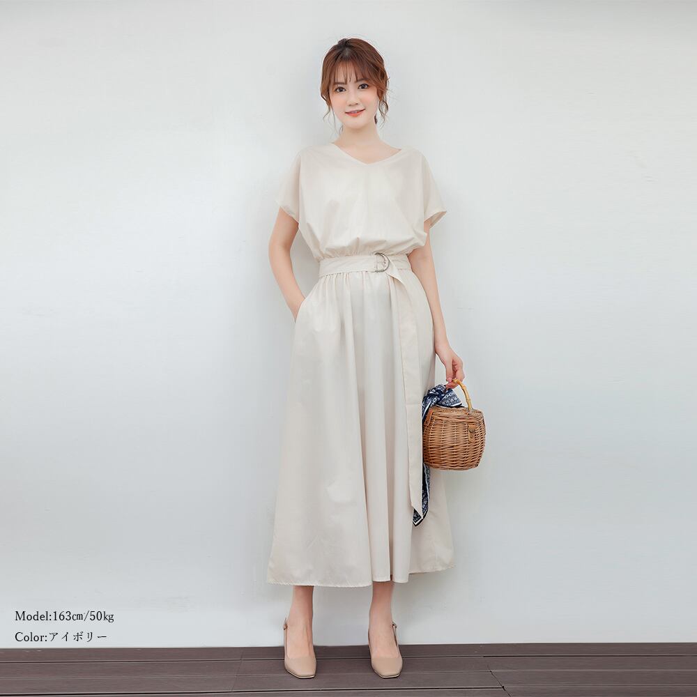 ウエストゴム仕様でウエストのメリハリを出す、大人シンプルなベルト付きワンピースです