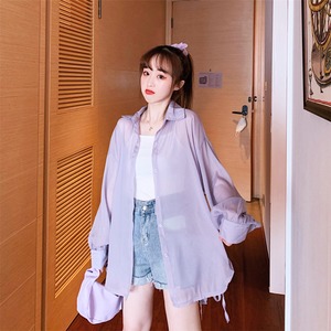 透け感のあるシアー素材で、さっと羽織るだけでもトレンドライクに仕上がります