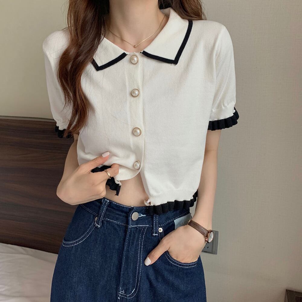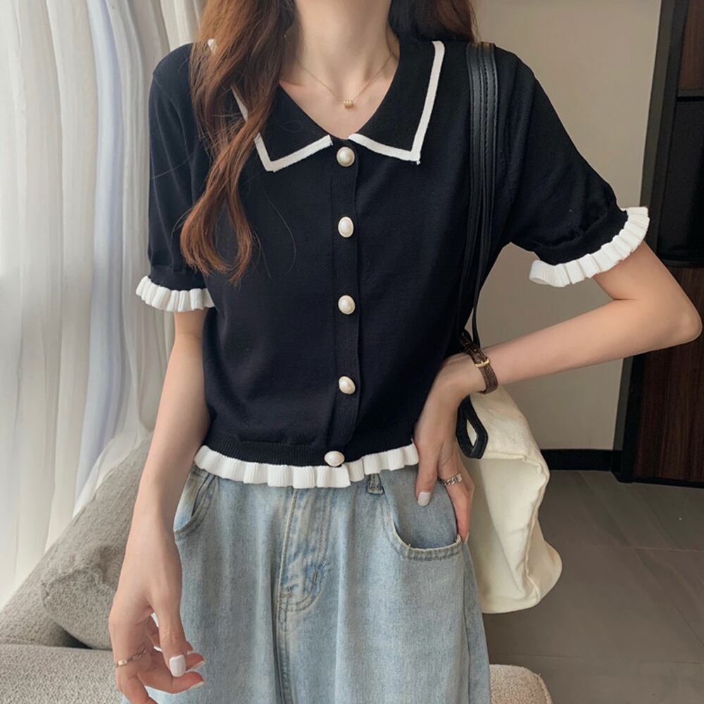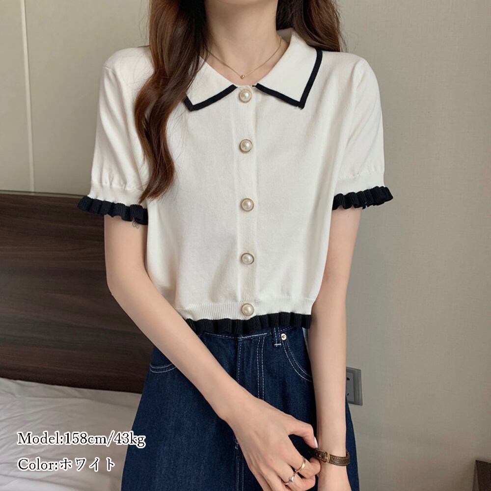柔らかい着心地で薄手の半袖ニットプルオーバー