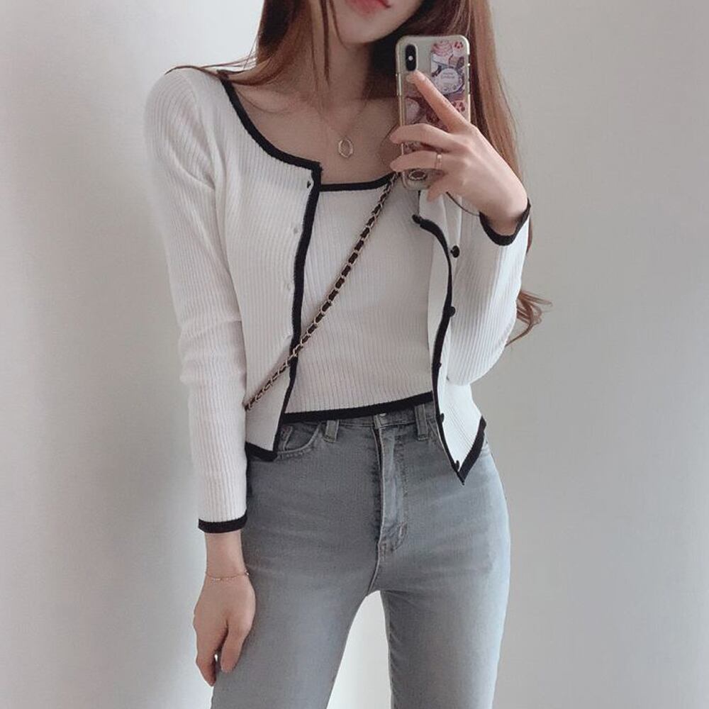 ニットカーディガンに同素材のキャミソールの2点セット