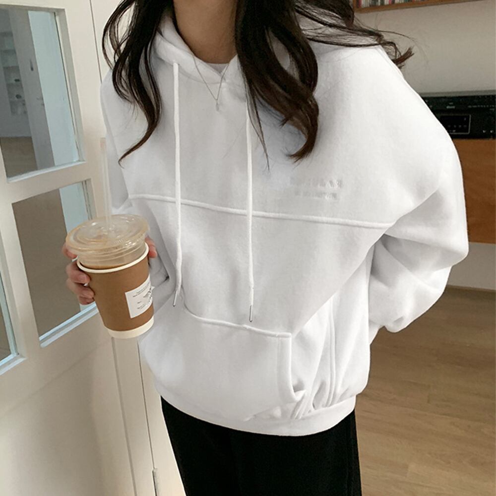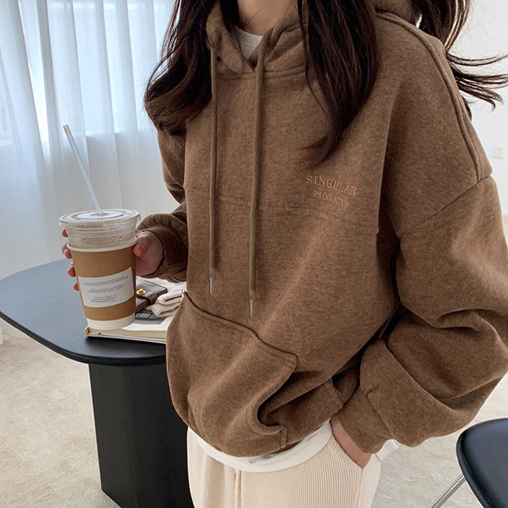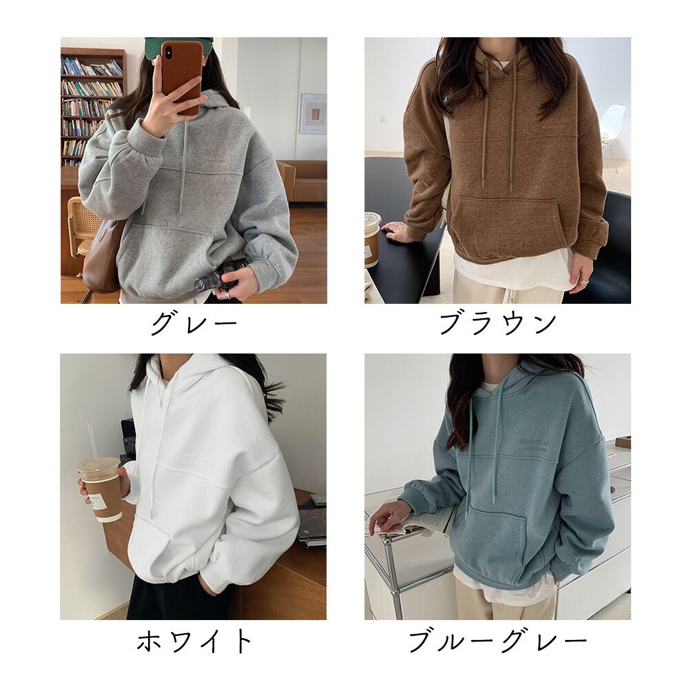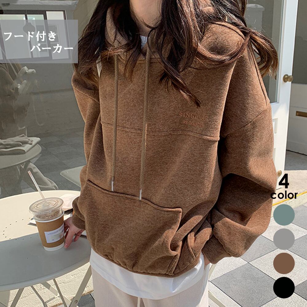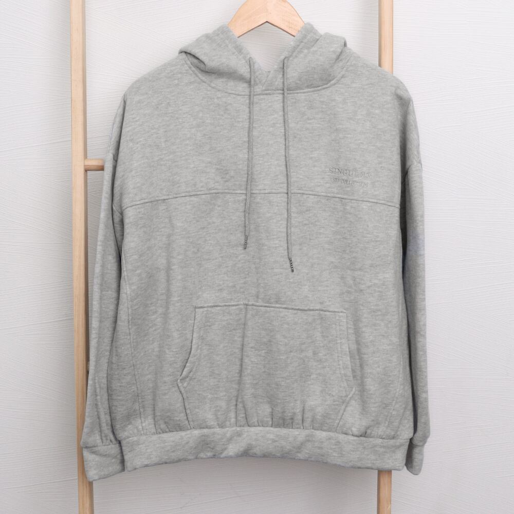 身幅と腕周りにゆとりをもたせた、オーバーサイズのパーカー