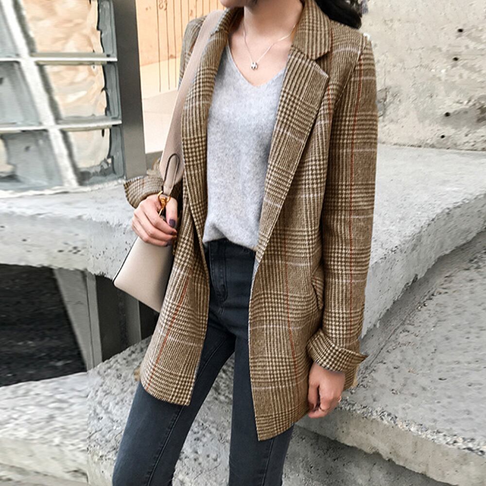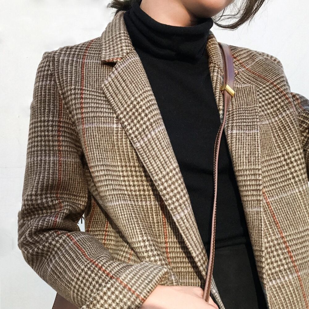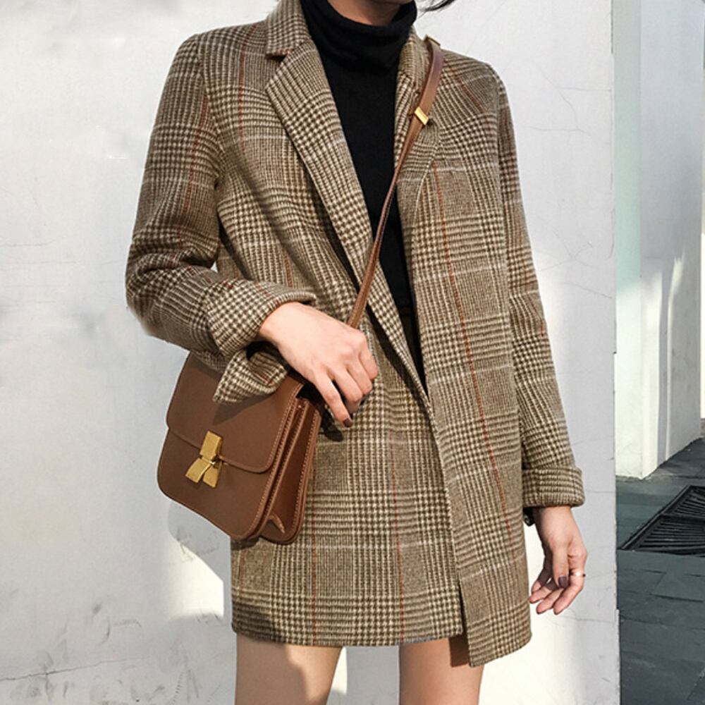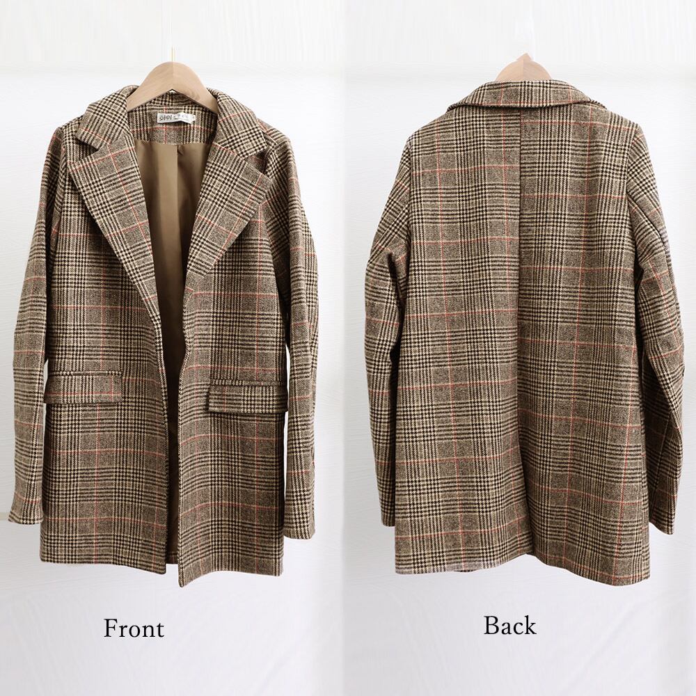 羽織るだけで今風コーデになるオトナっぽいシーズンムードが漂うミドル丈のグレンチェックジャケット