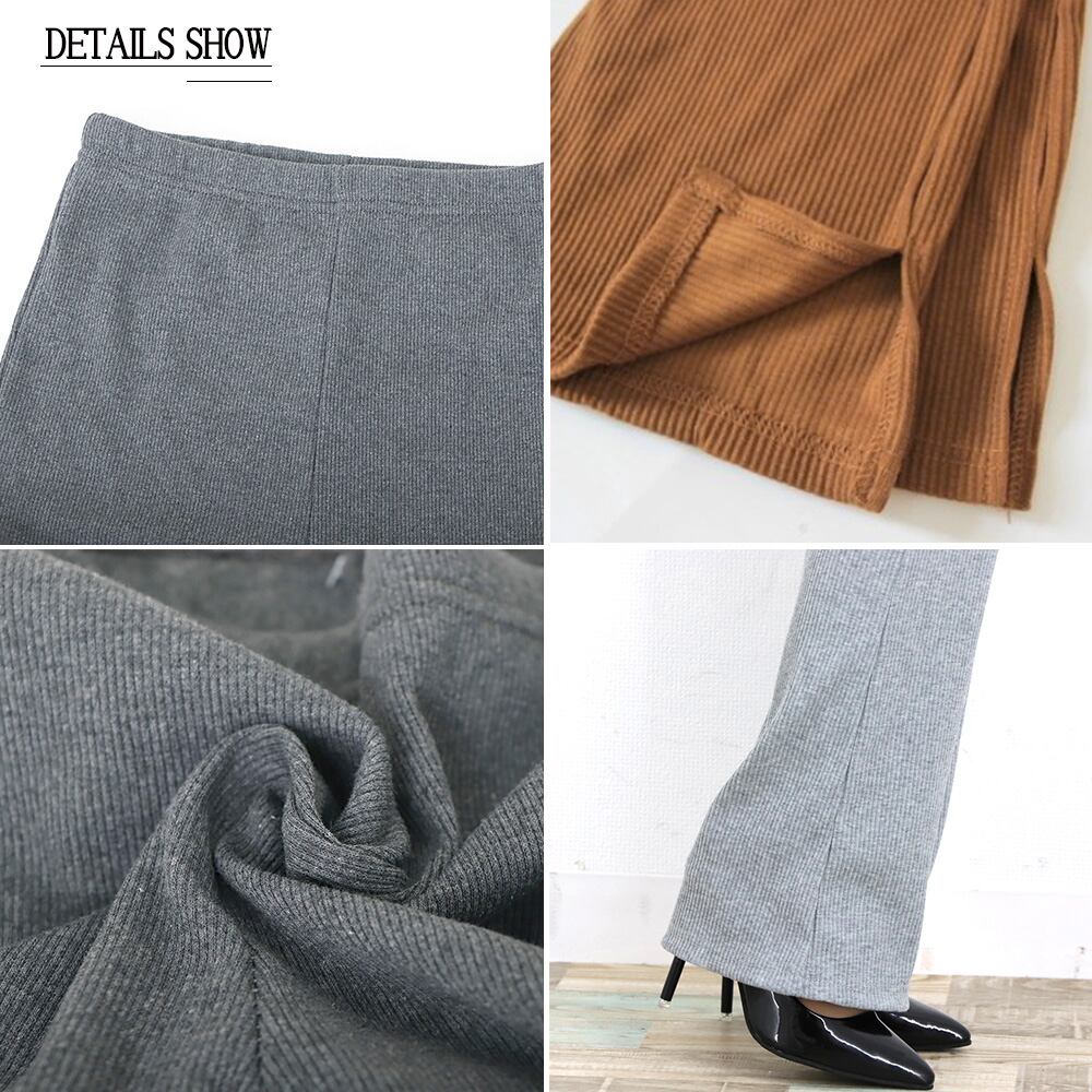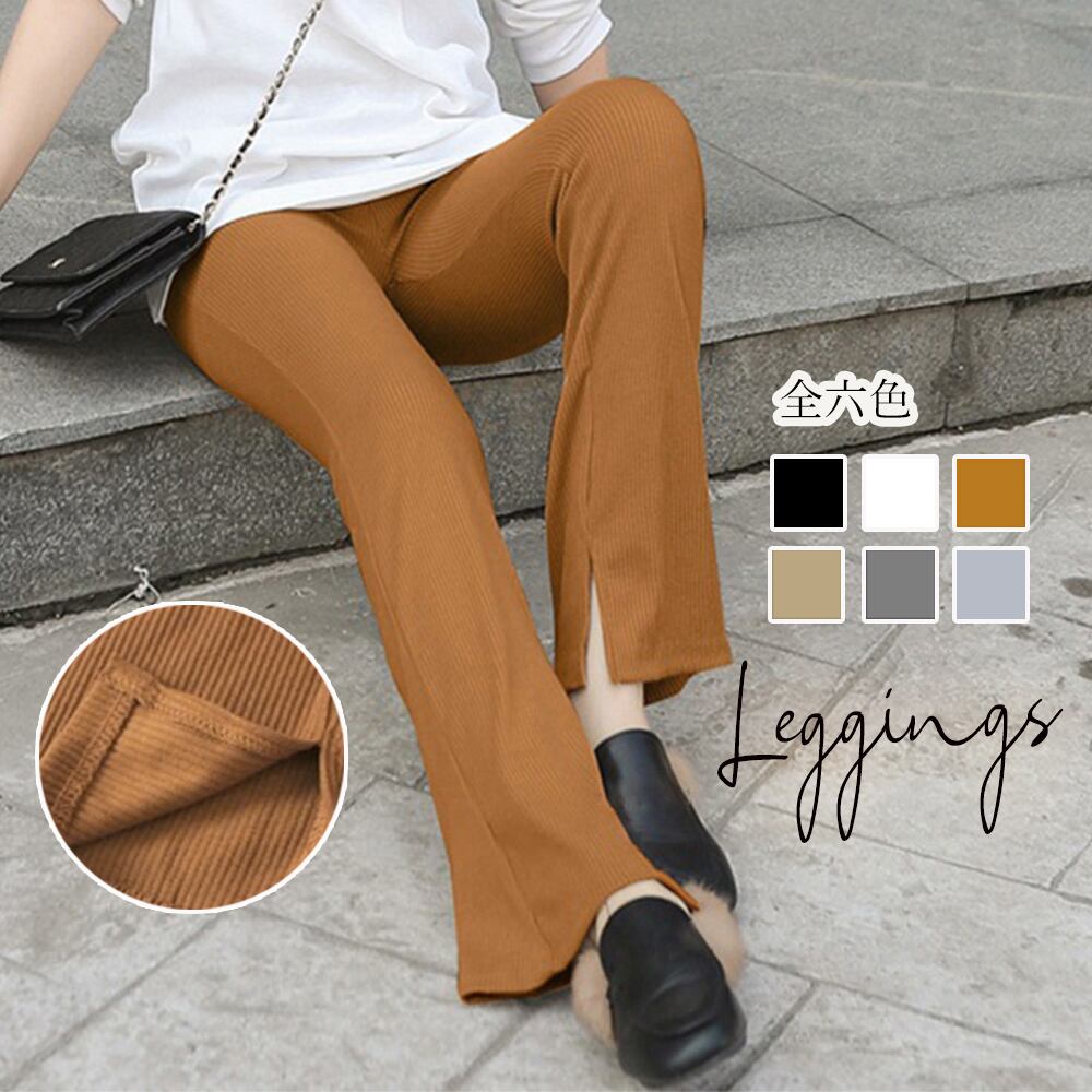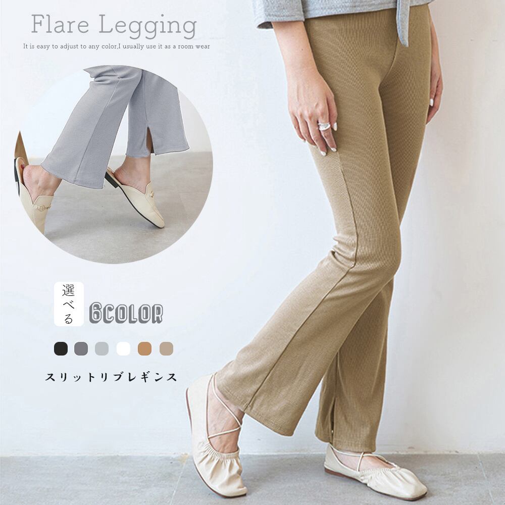 伸縮性に優れて穿き心地抜群、内側にスリットが付いて裾セミフレアシルエットの大人女性用レギンスパンツ