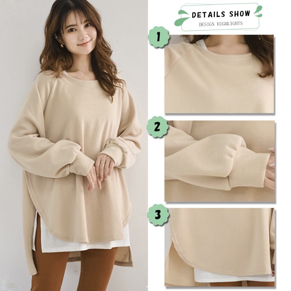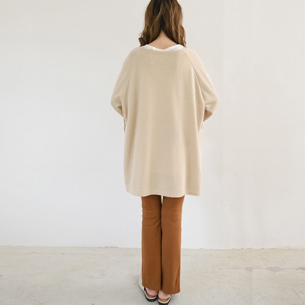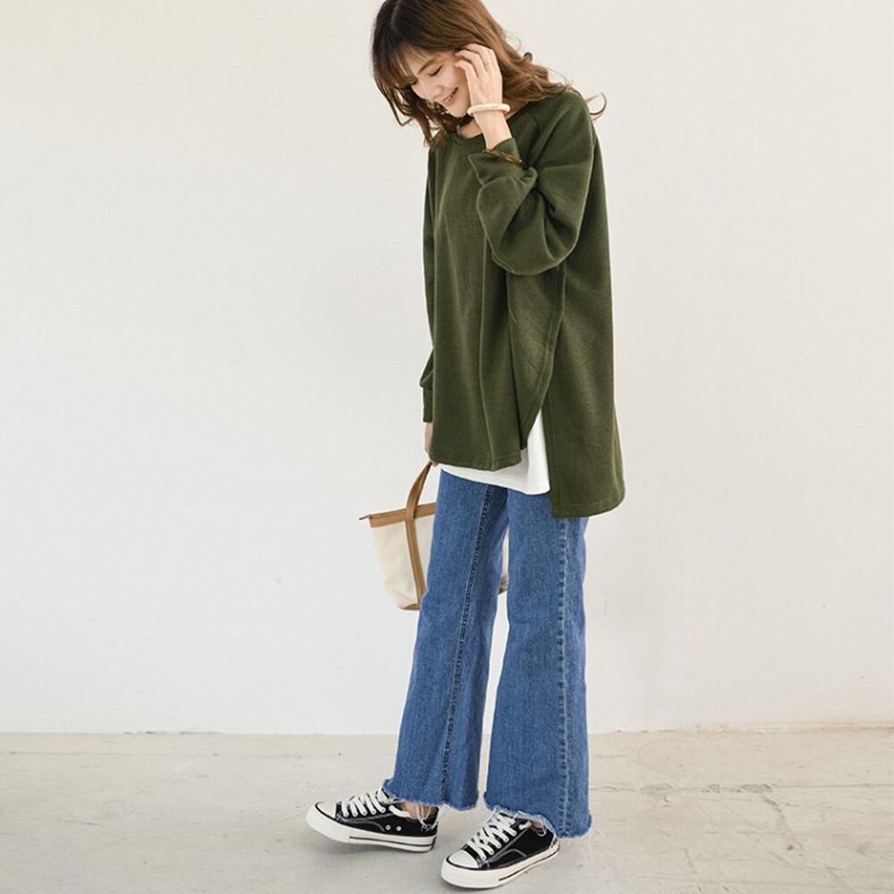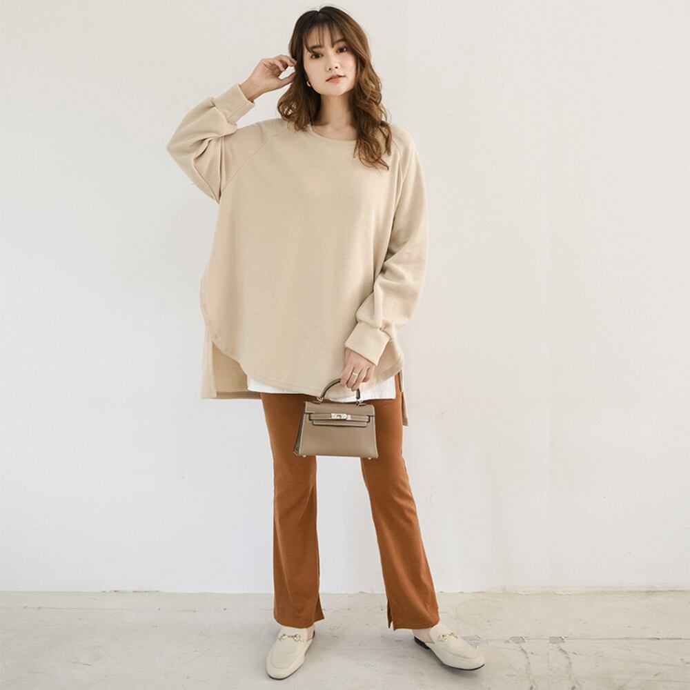 ゆるシルエットとヒップが隠れる長め丈だから、スキニーやレギンス合わせでメリハリコーデ