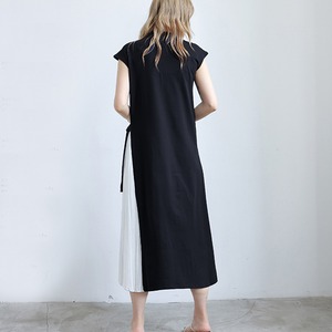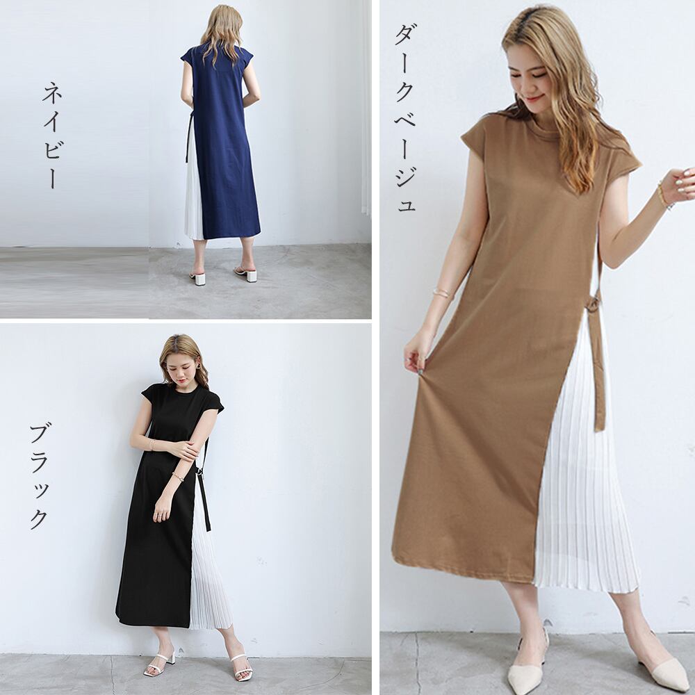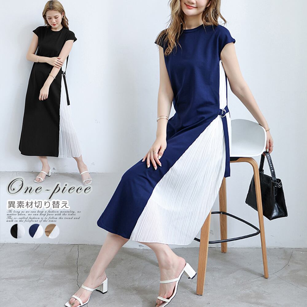 肌に優しく素材で仕上げた異素材切り替え韓国風ワンピース