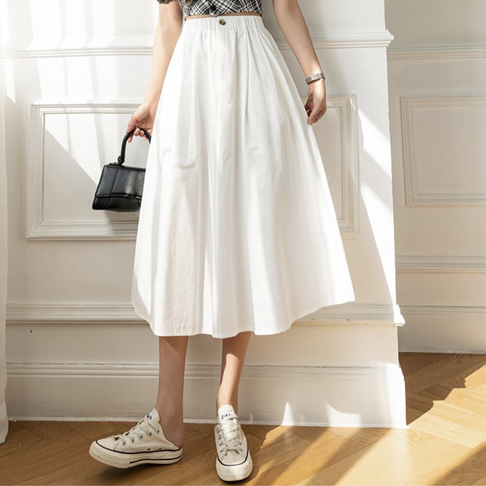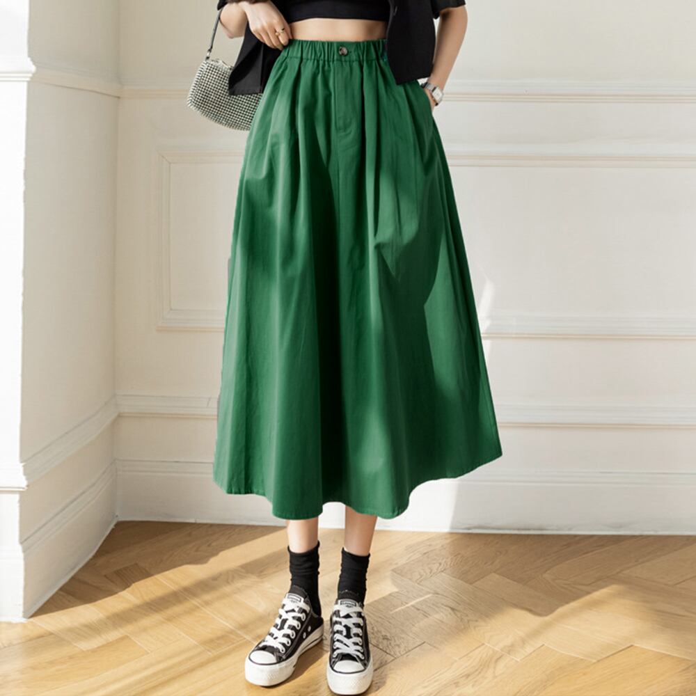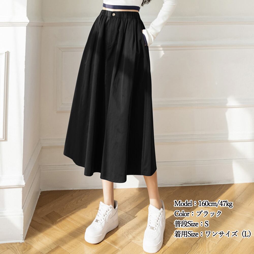 広がるすそが女性らしく、カジュアルにもきれいめにも着こなせるフレアースカート