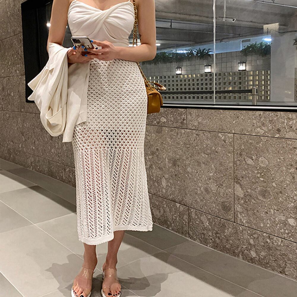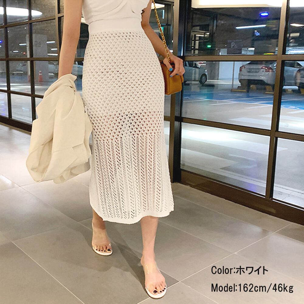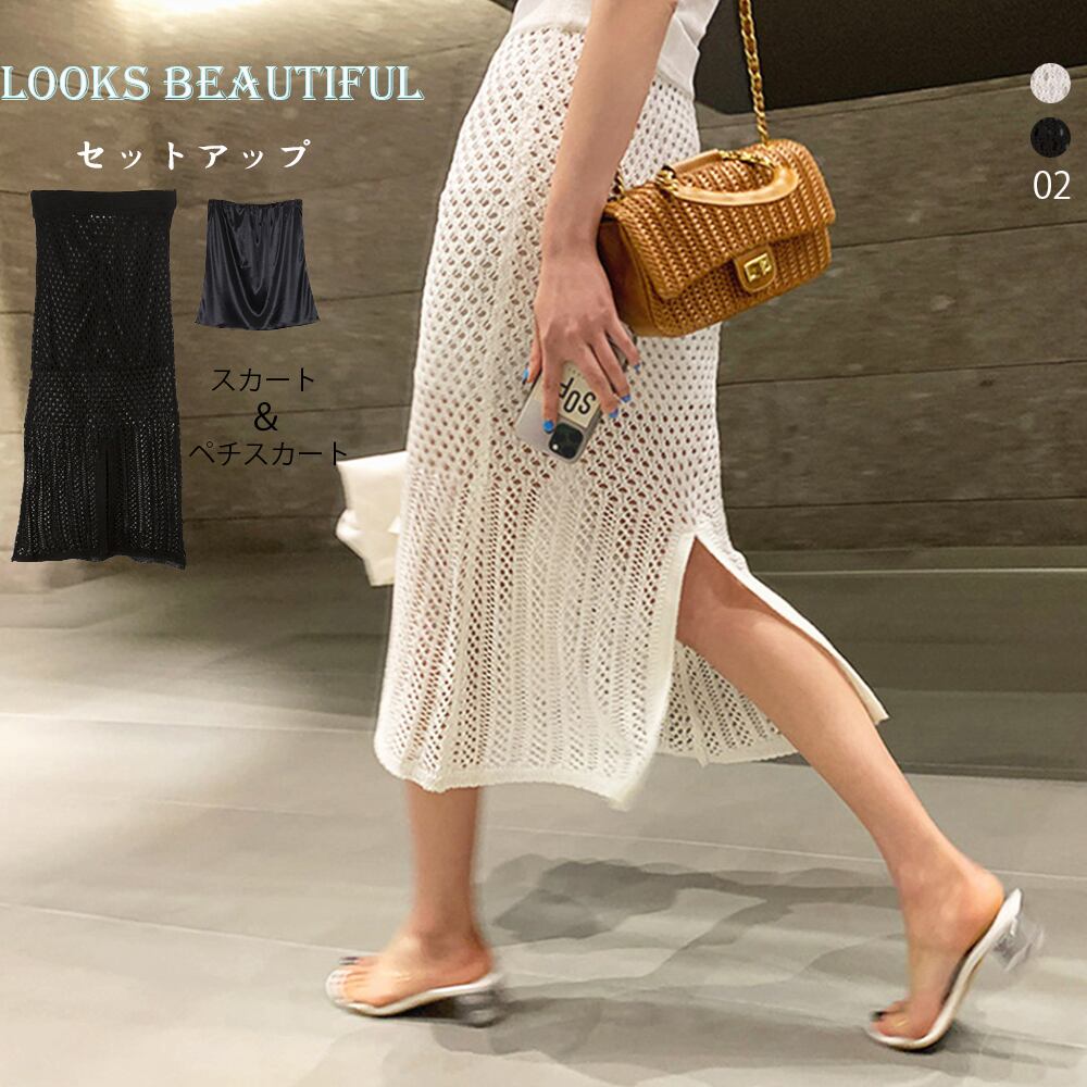 脚を長く細く見せてくれるスッキリしたロングスカート、ペチコート付きのデザインで透けるのを防止してくれる