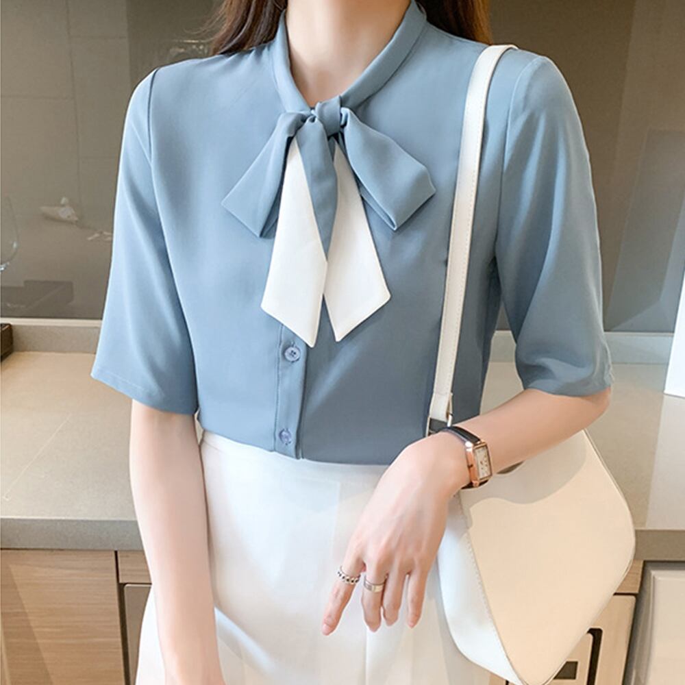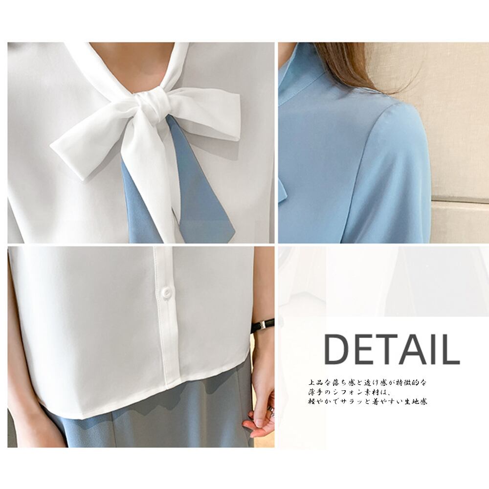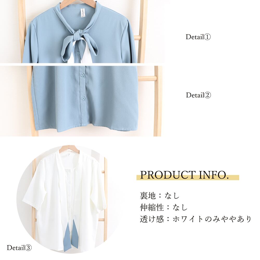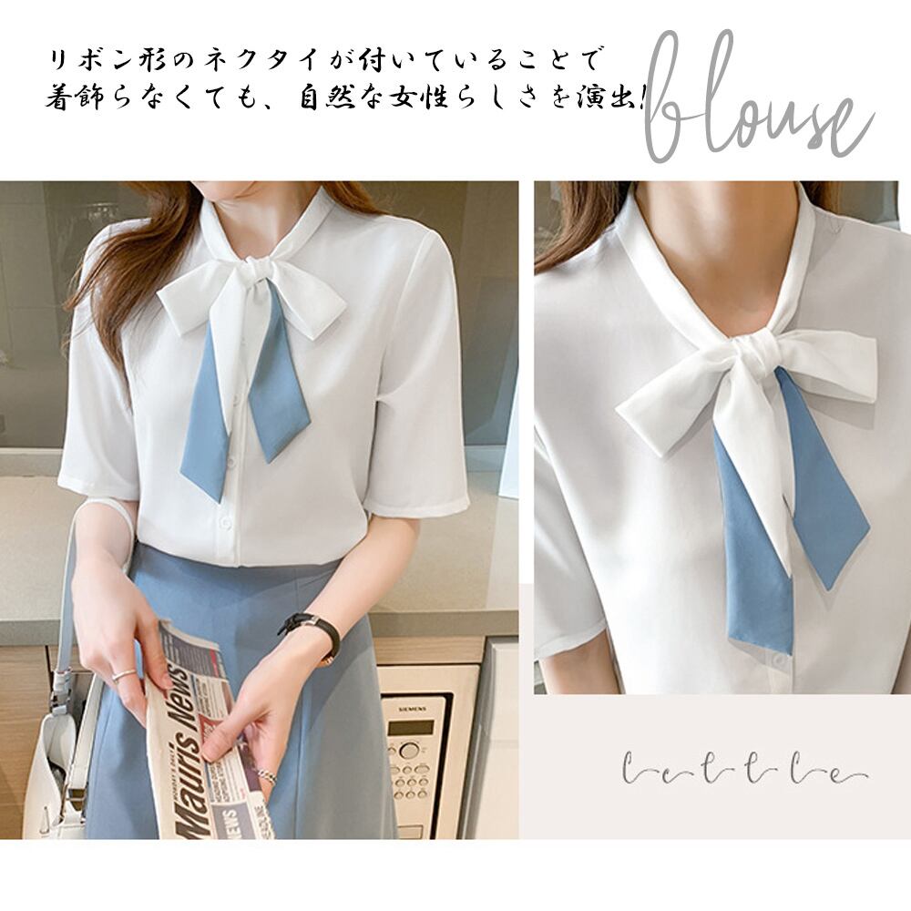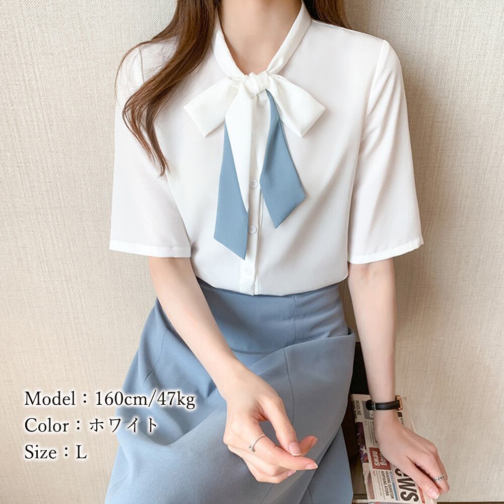 大人女性の上品な雰囲気を引き立ててくれる半袖ネクタイブラウス