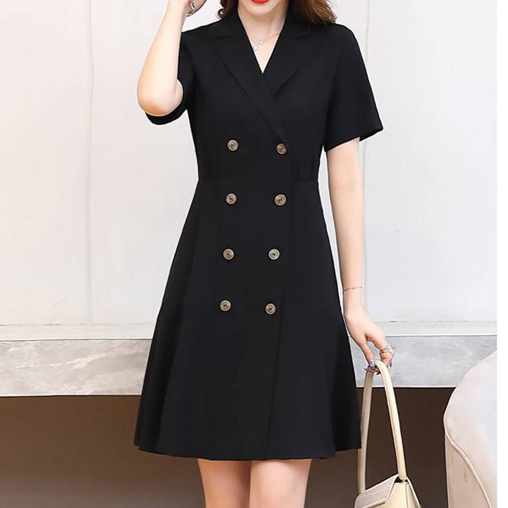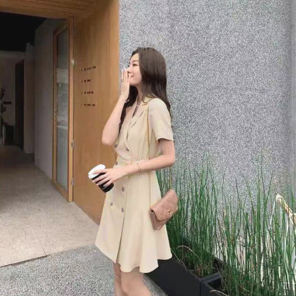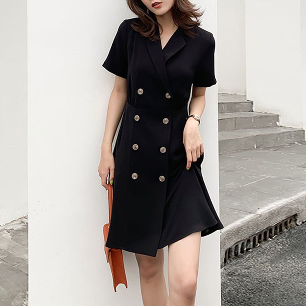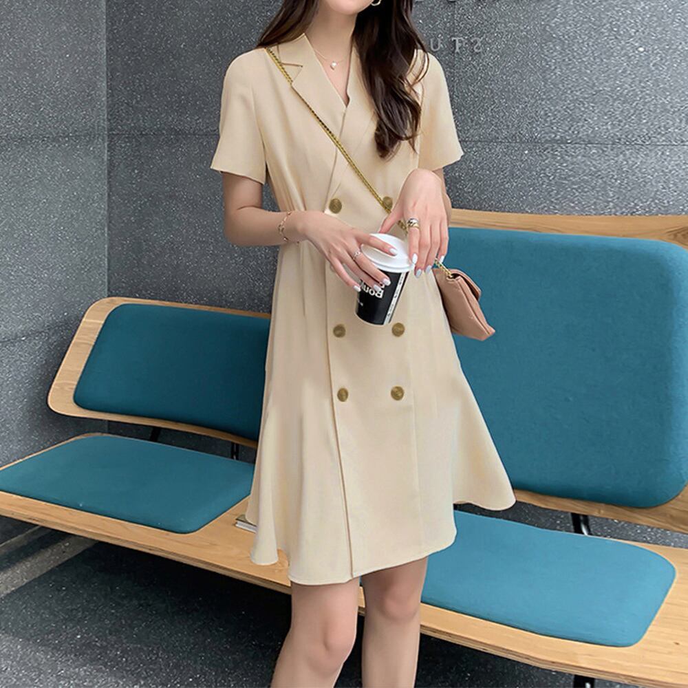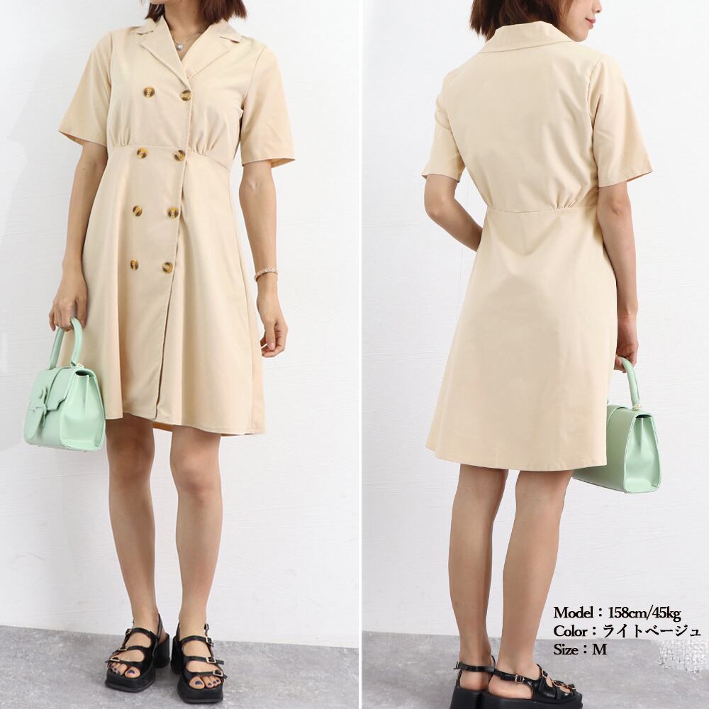 テーラード風の折り襟を加えたタイトシルエットのトレンチワンピース