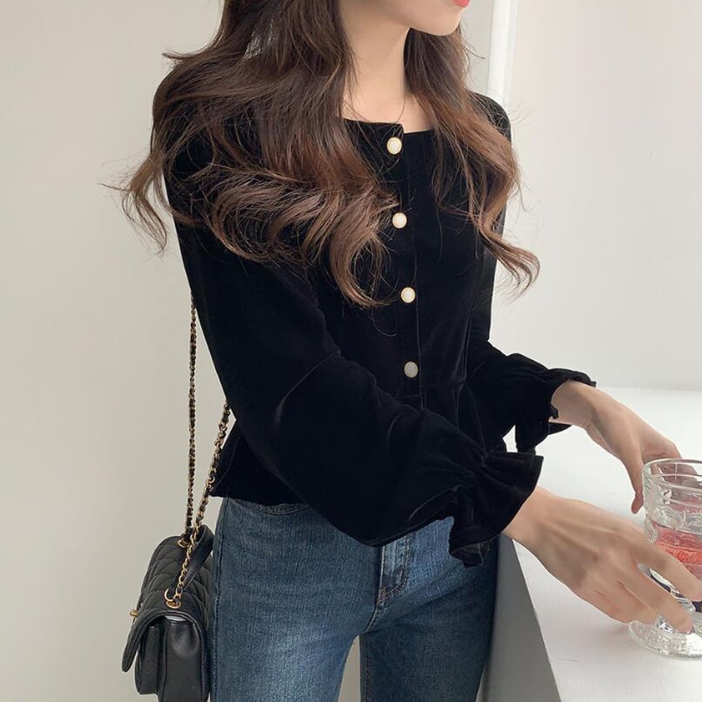スクエアネックのデザインはデコルテラインが綺麗に見えます