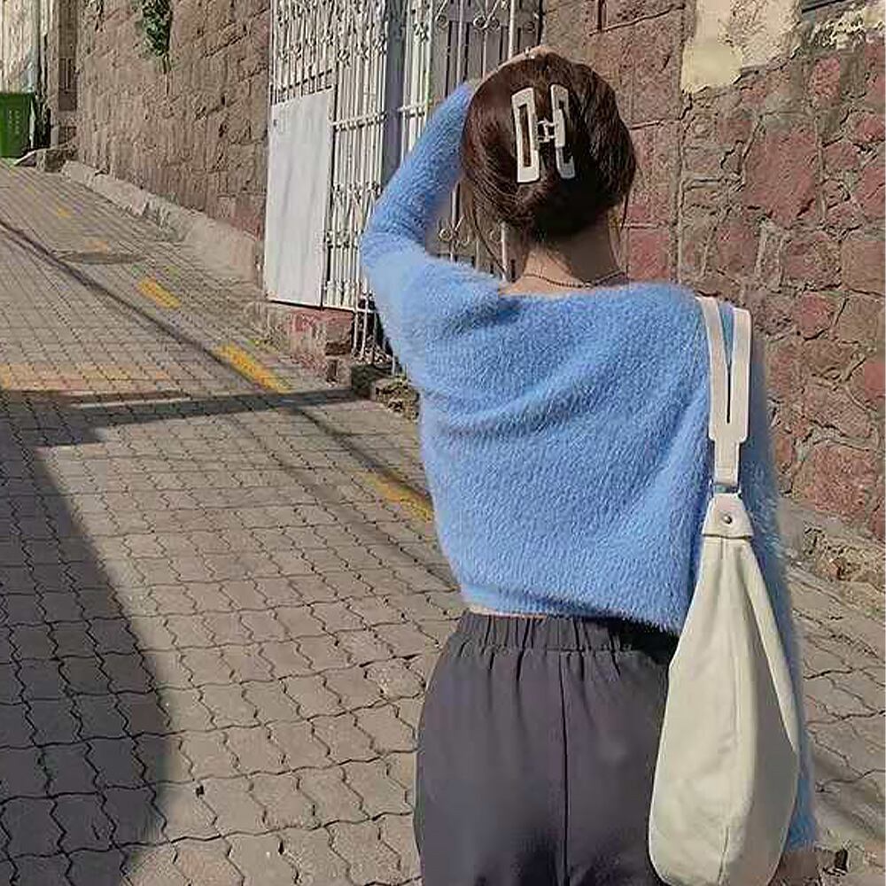 首元がすっきりと開いているので、アクセントにネックレスをプラスするのも素敵です