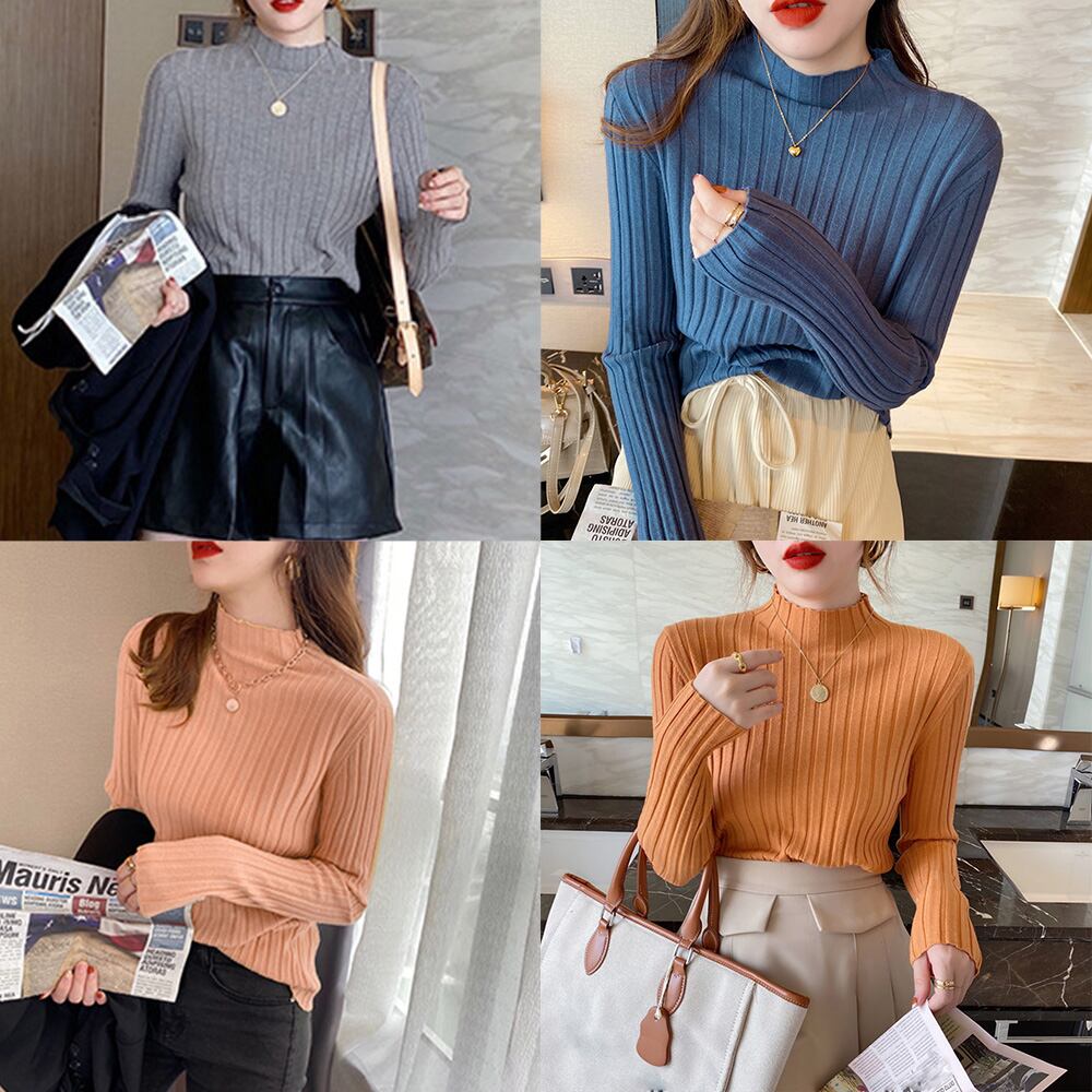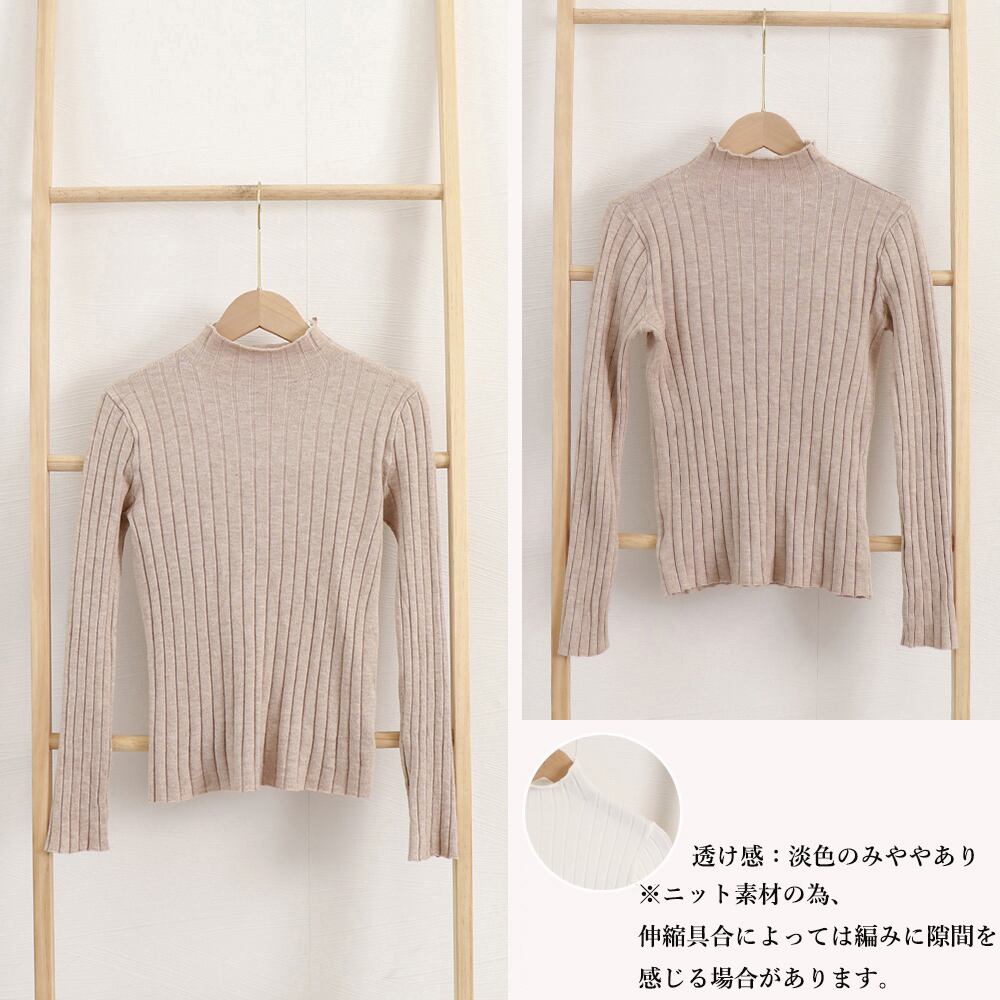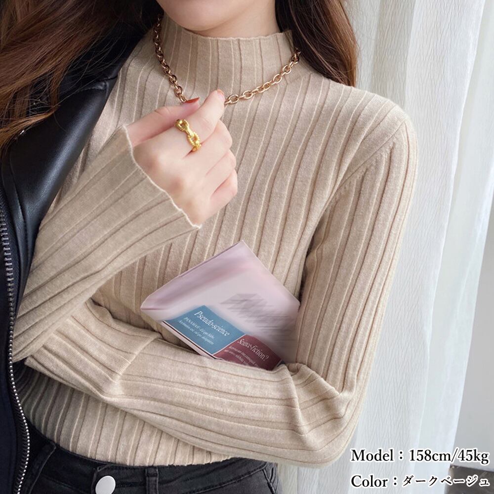 コンパクトな着心地が女っぷりを高めてくれる長袖リブニットトップス
