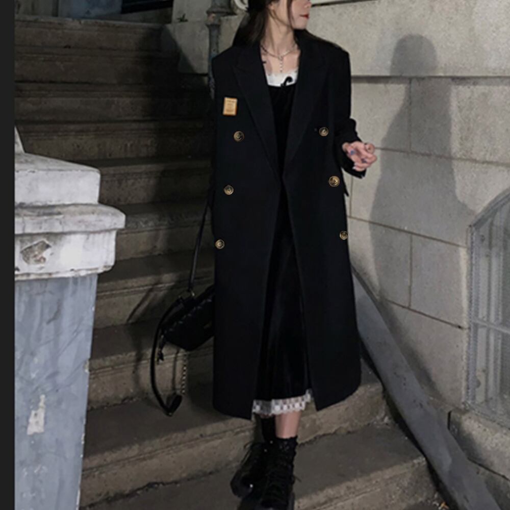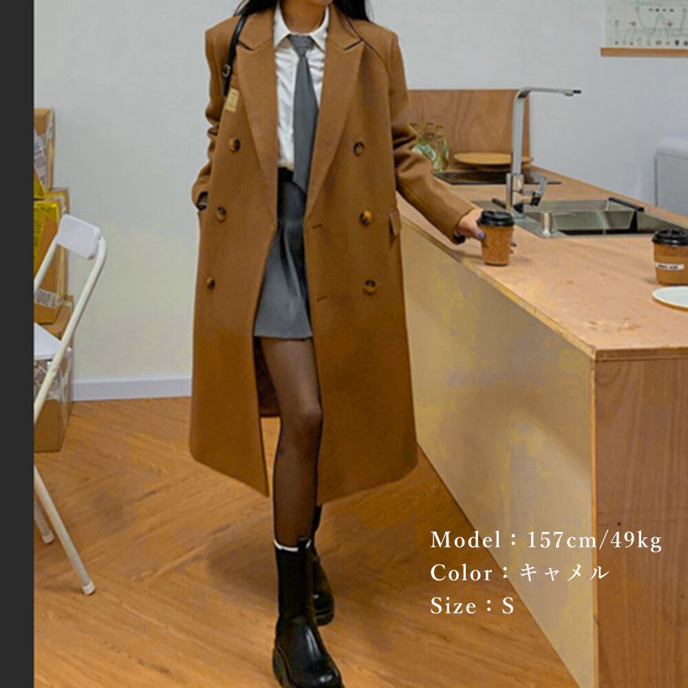 大きめの襟とダブルボタンのデザインがクラシカルな雰囲気を醸し出すオーバーサイズチェスターコートの