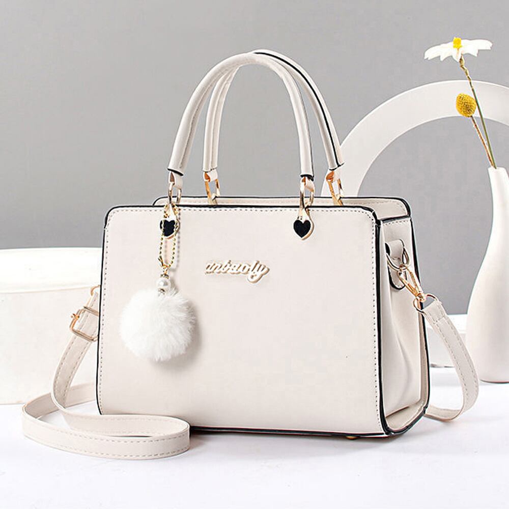 1つは持っておきたい、きちんと感のあるファーチャーム付きショルダーバッグ