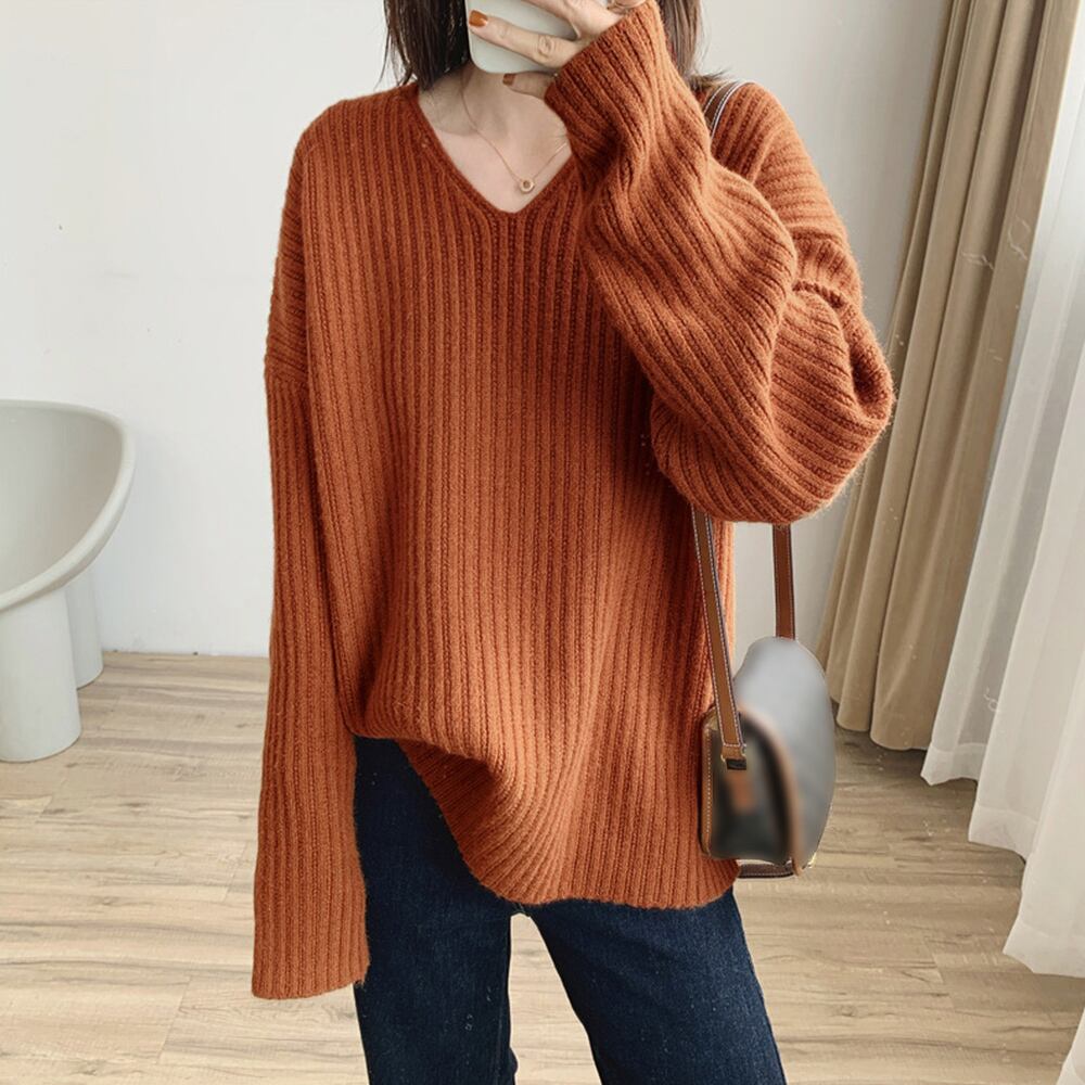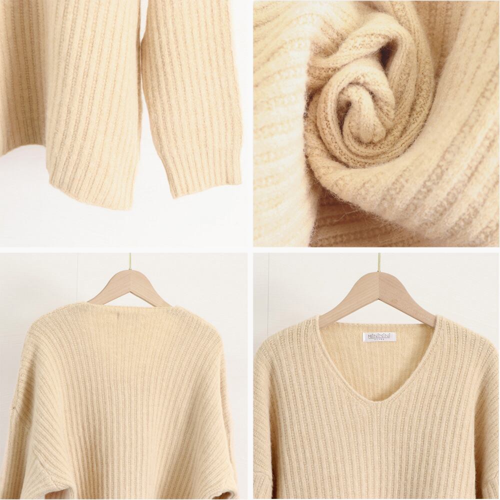 ピッチの太いリブ仕様で縦のラインを強調してくれるニットトップス