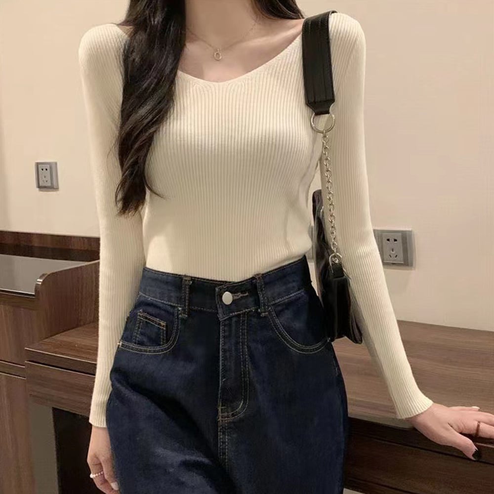 1枚を着るだけできれいめなオトナ女子に変身できるリブニットトップス
