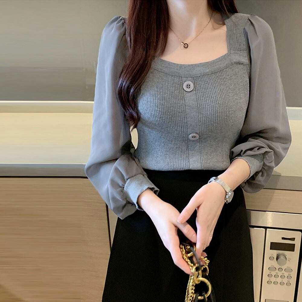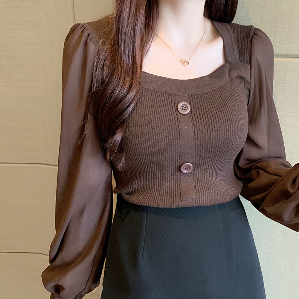 袖から覗く素肌がセンシュアルなシフォン切り替えシャツブラウス