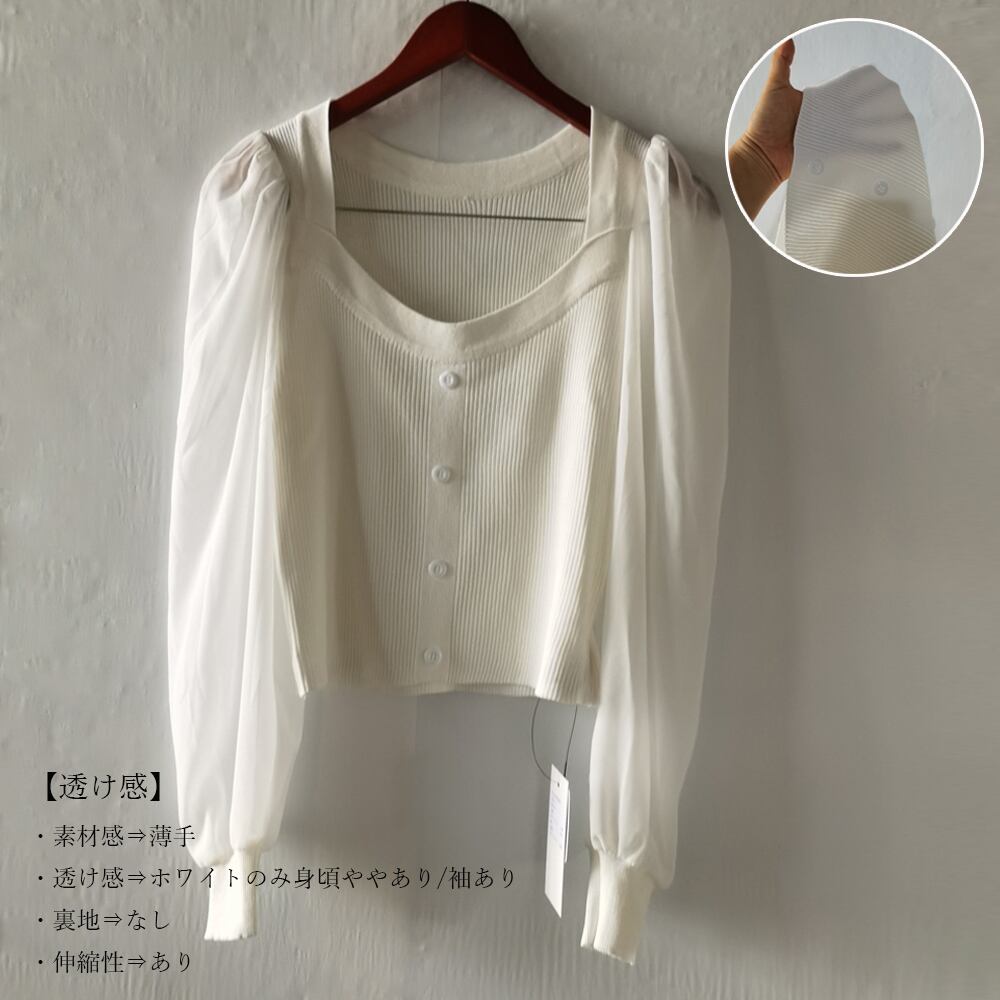 透け感:ホワイトのみ身頃ややあり/袖あり