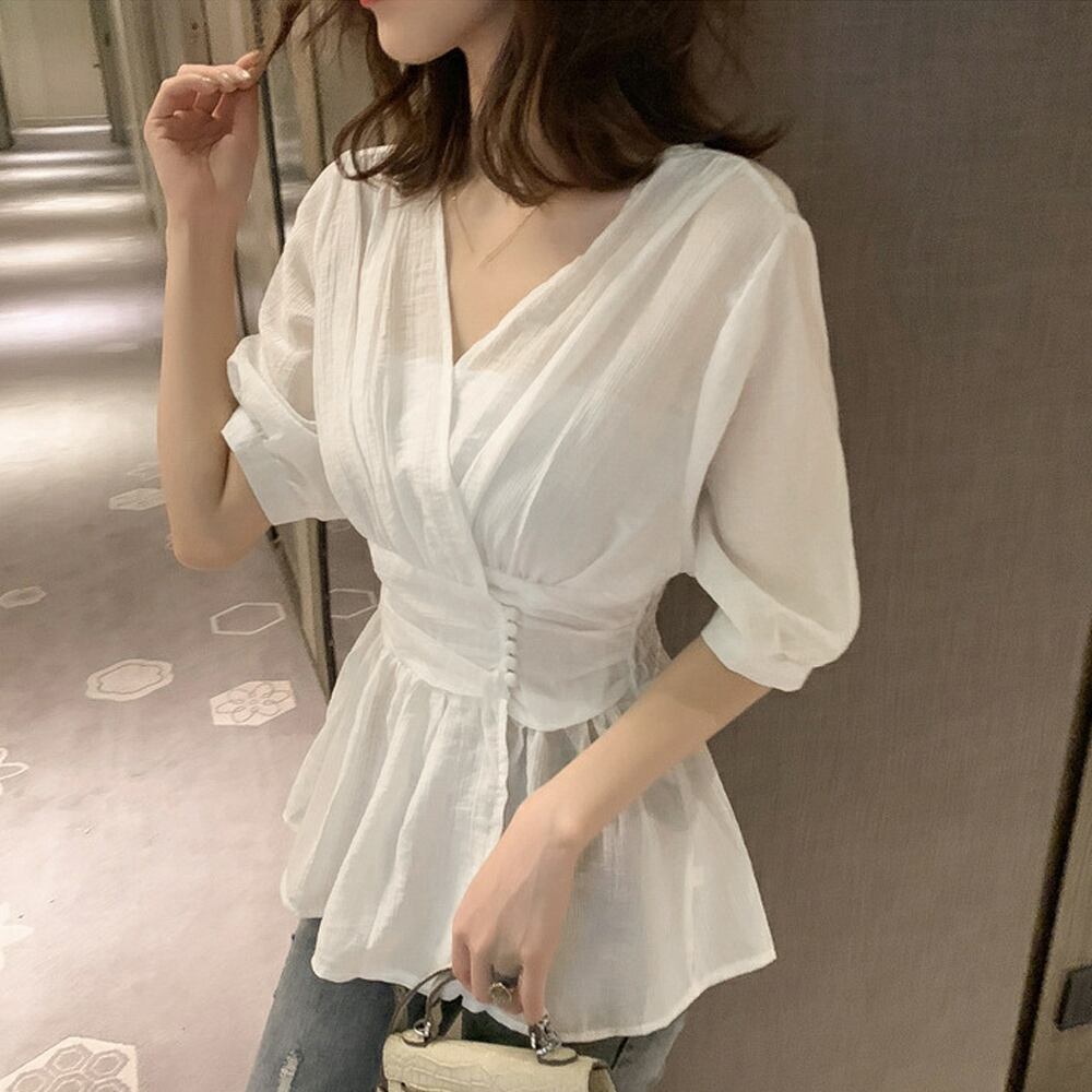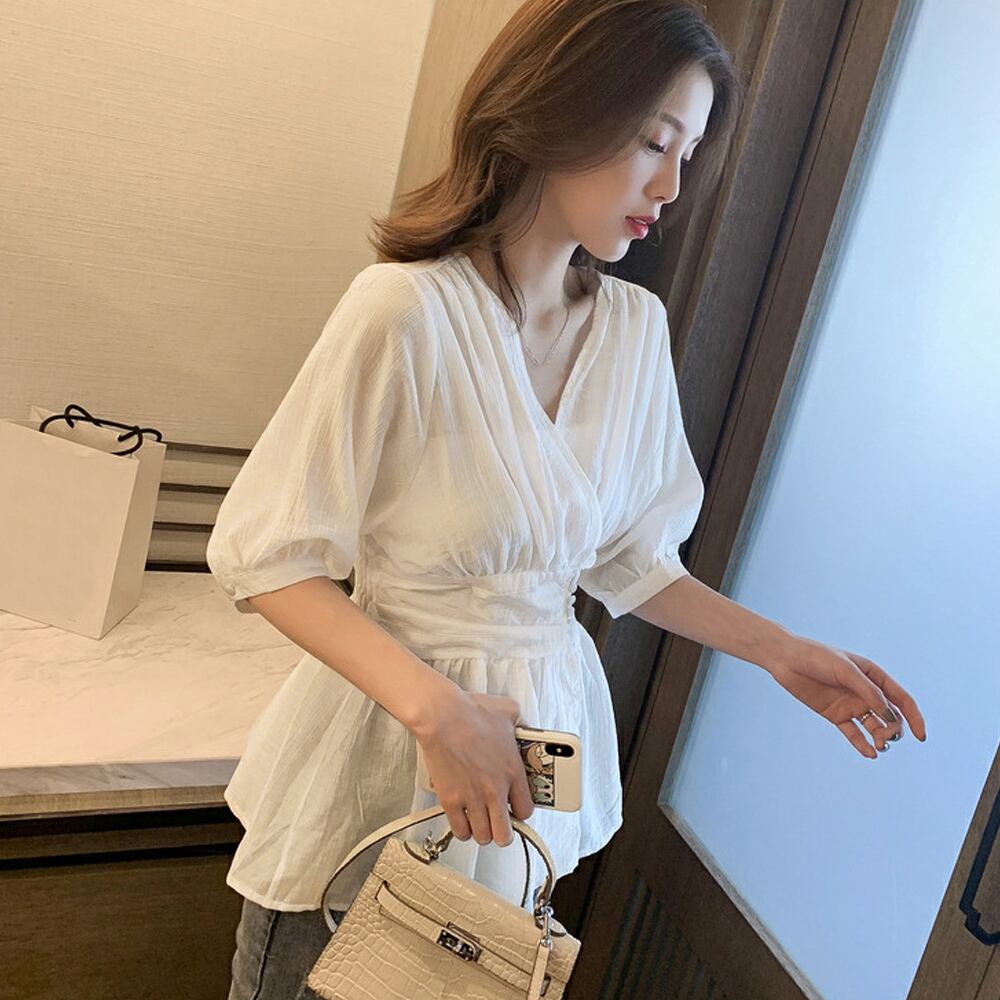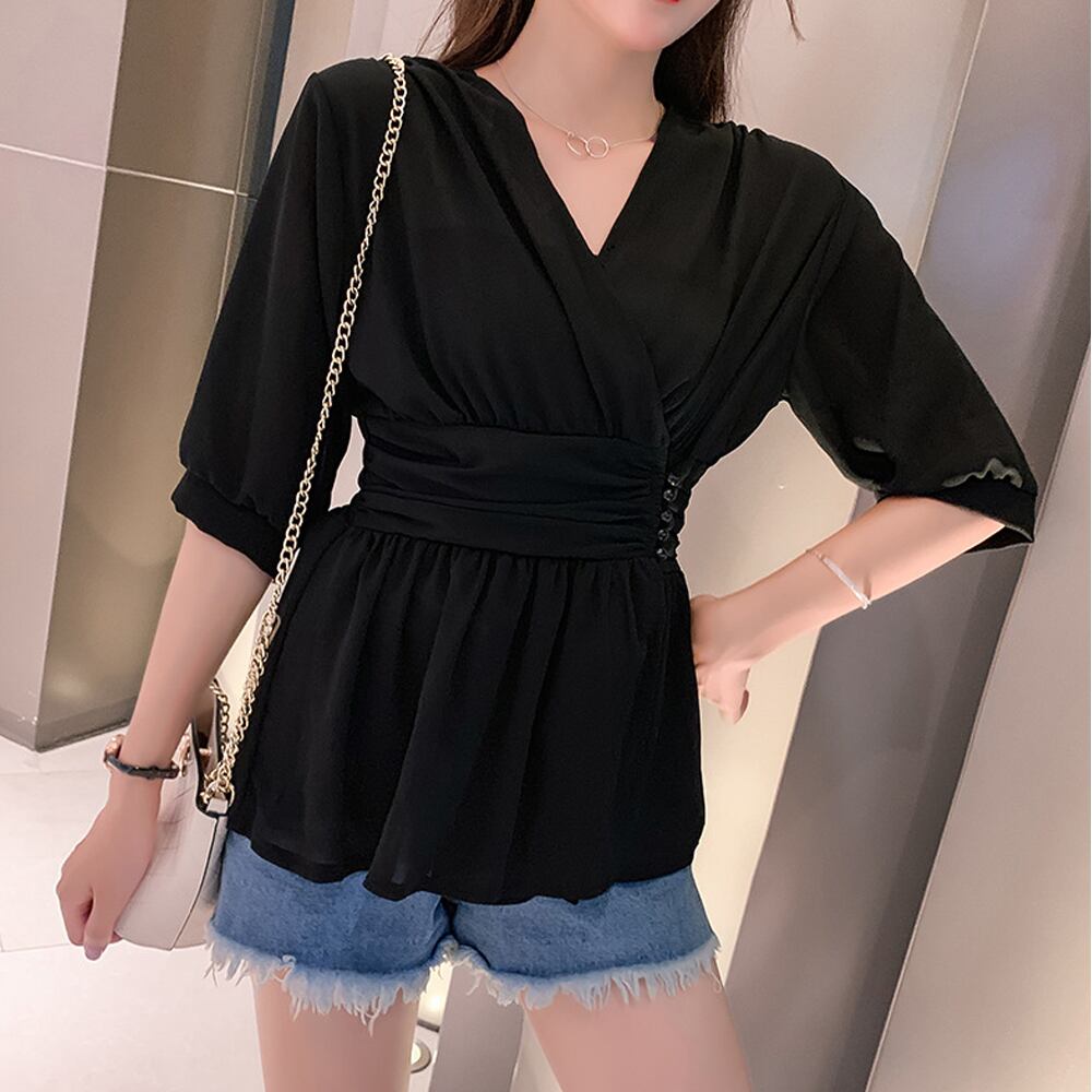 使い勝手の良い白と黒2カラーを展開し、ウエストを細く見せるペプラムブラウスです