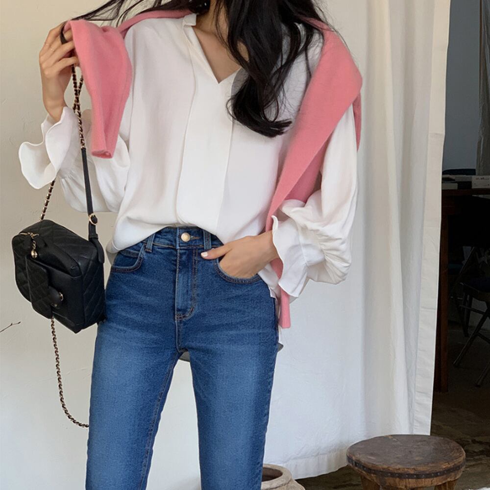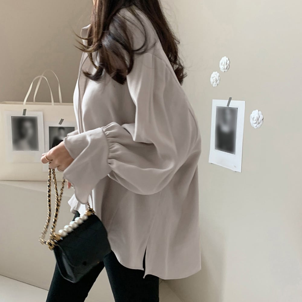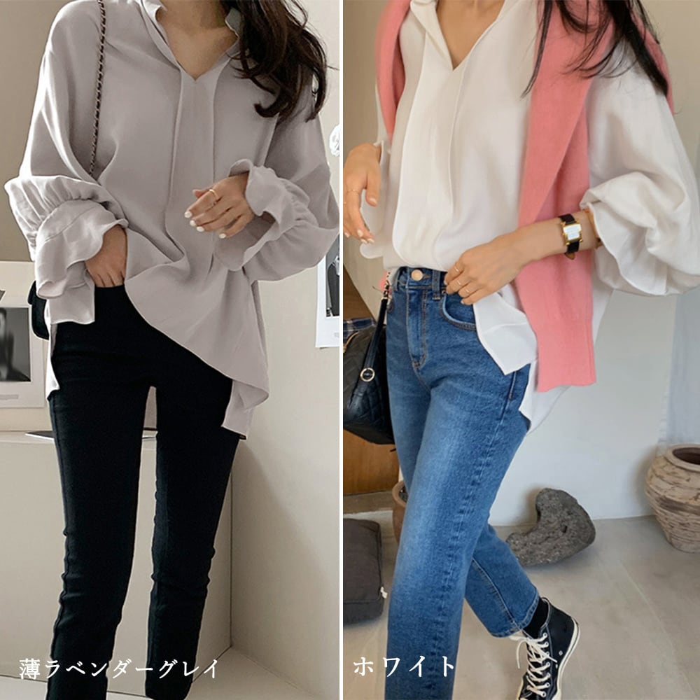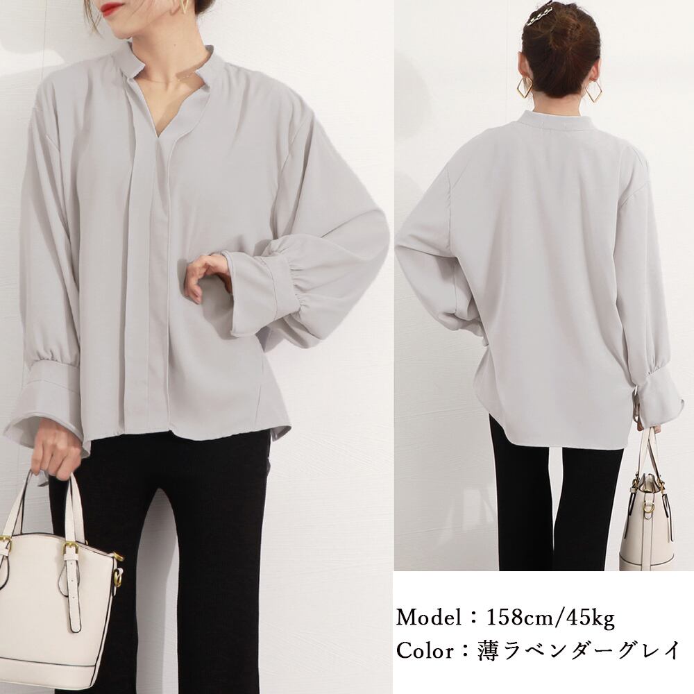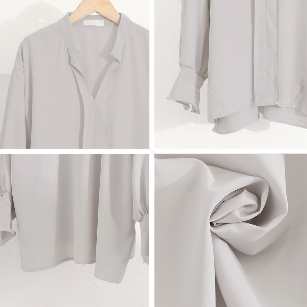 ゆとりのあるサイズ感ながら襟のスキッパーデザインが抜け感のあるキッパーブラウス