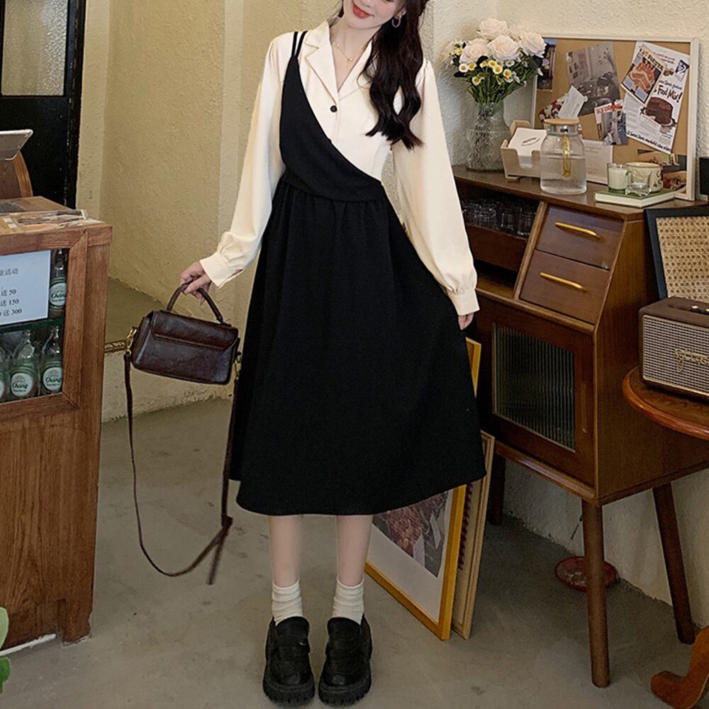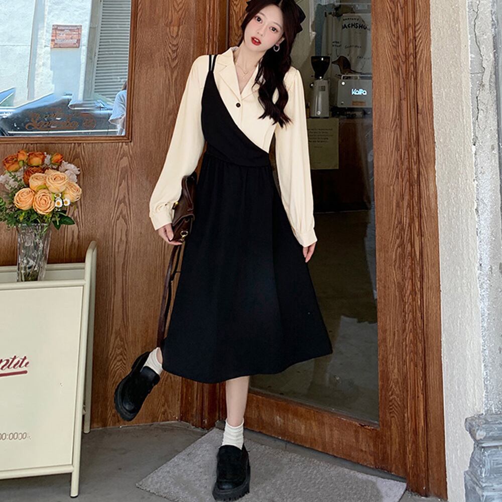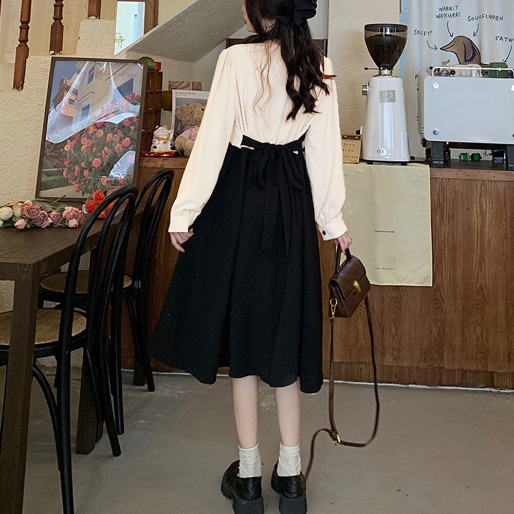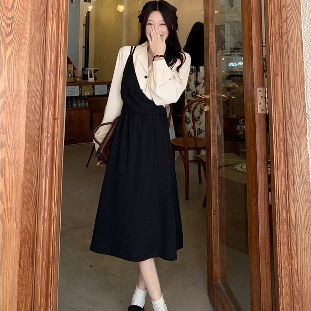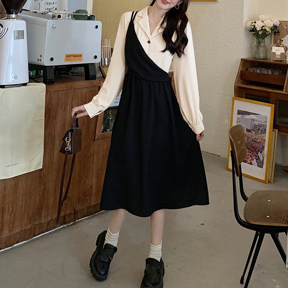 重ね着風の、甘過ぎない大人のフェミニンフェイクツーピースワンピース