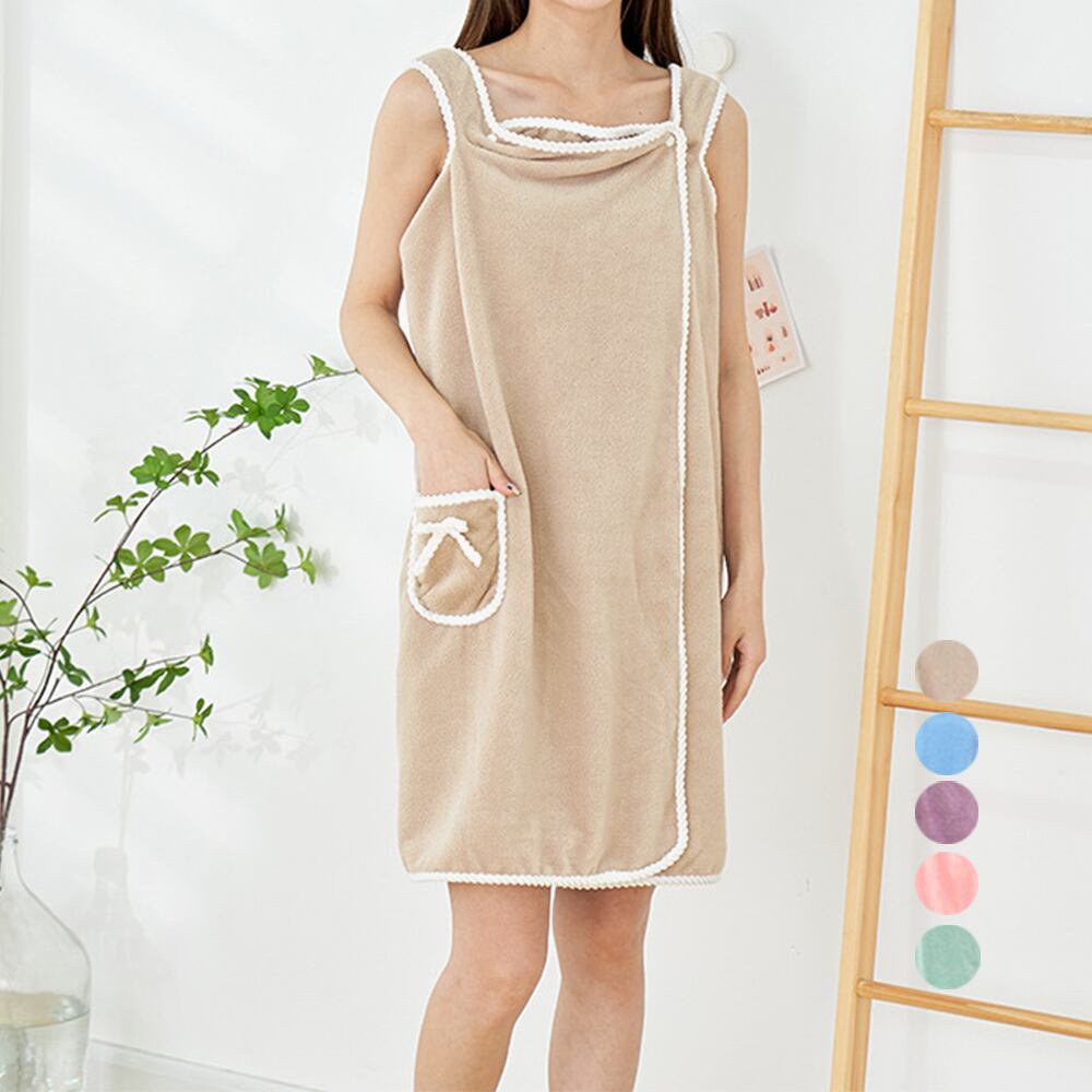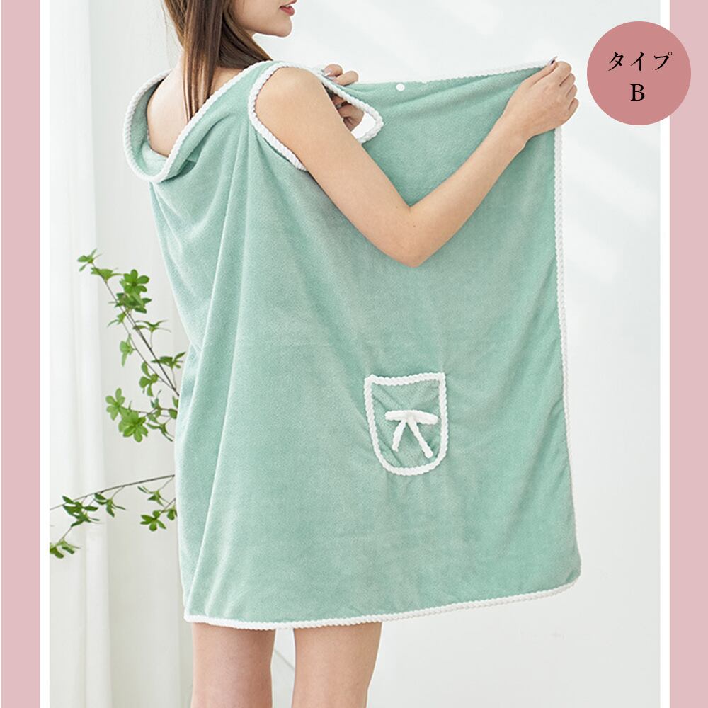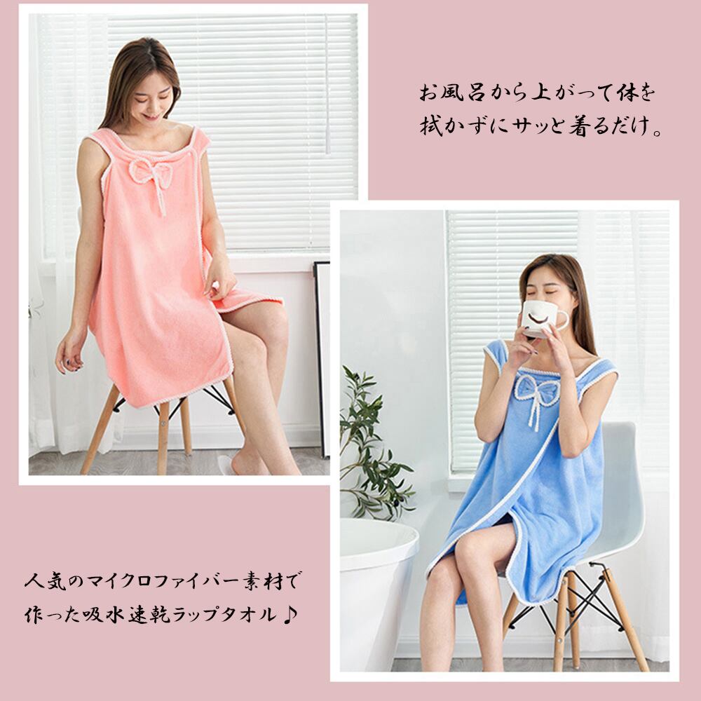 お風呂から上がって体を拭かずにサッと着るだけ。人気のマイクロファイバー素材で作った吸水速乾ラップタオル