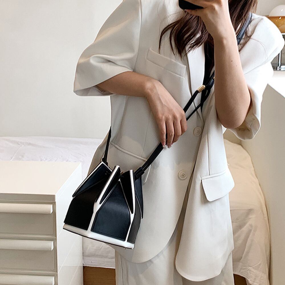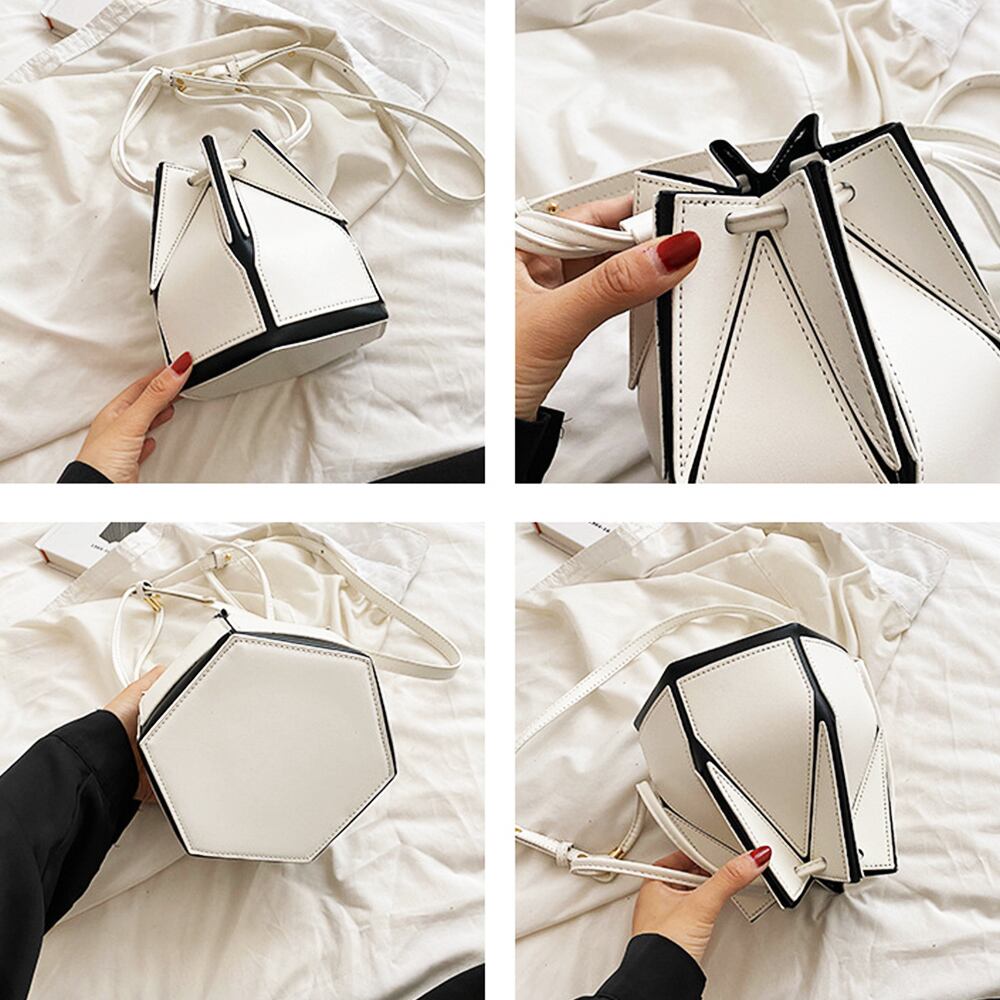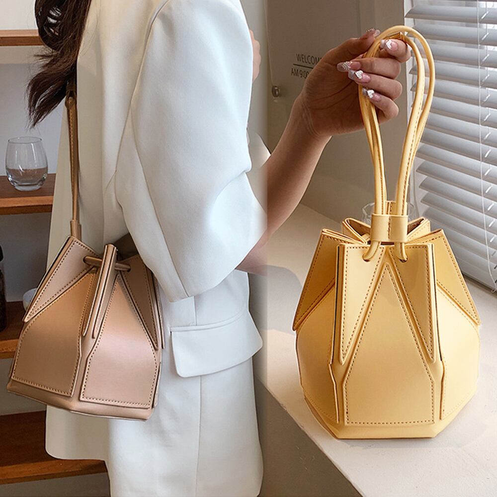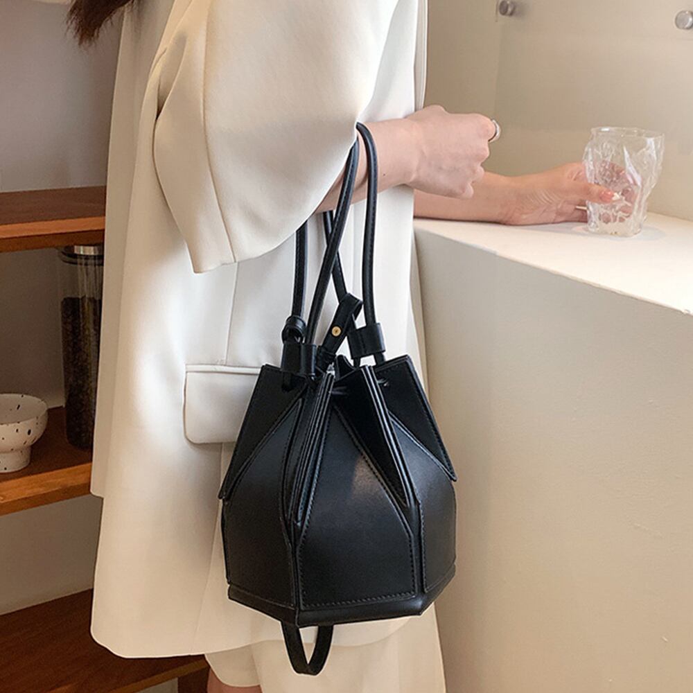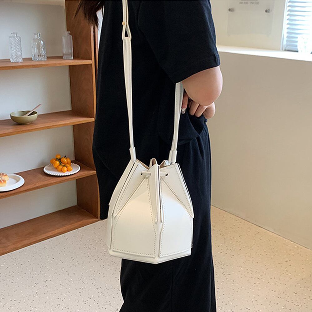六角形でコロンとしたフォルムが可愛い巾着ショルダーバッグ