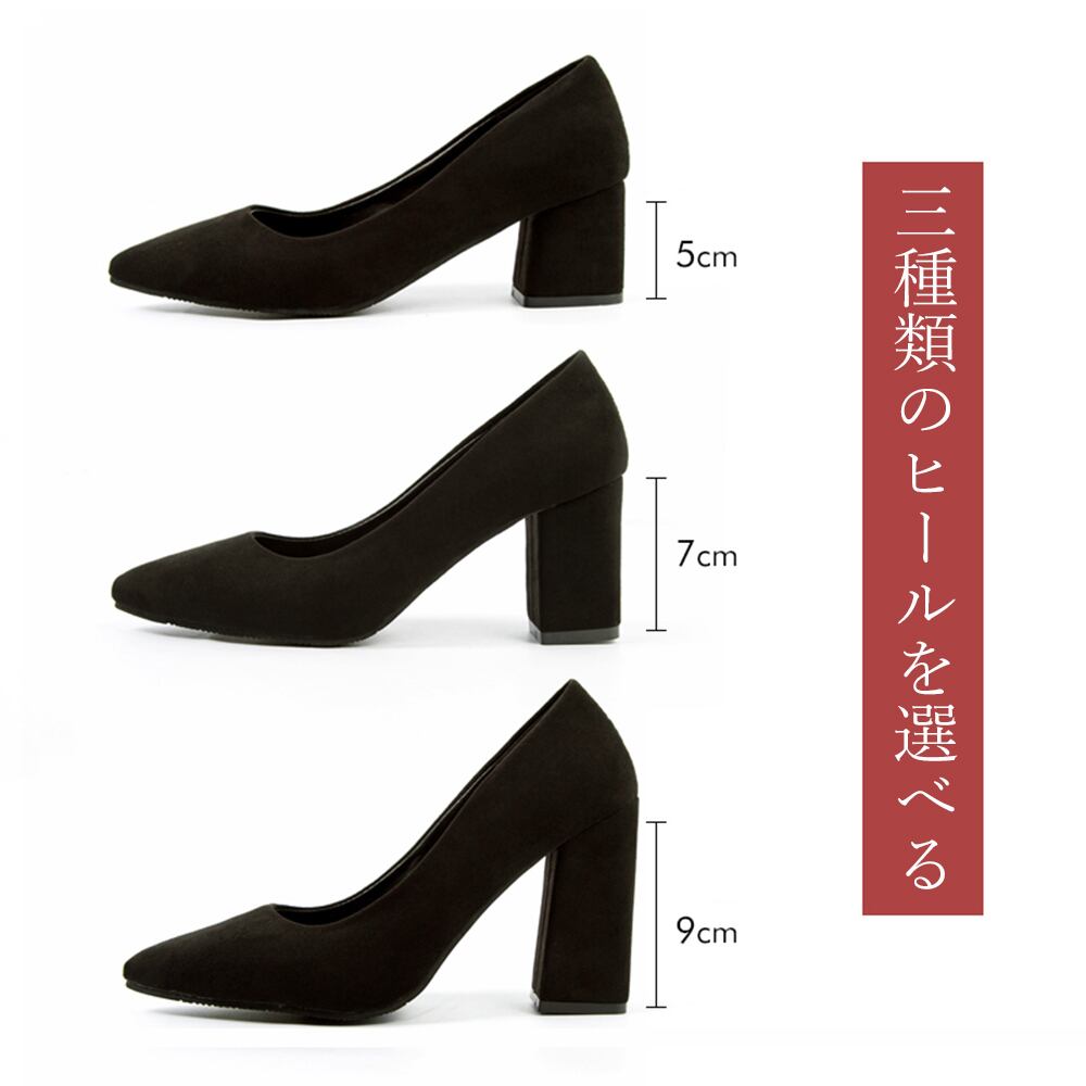 美脚と歩きやすさを兼ね備えた5cm/7cm/9cmヒールは、太ヒールなので長時間歩いても、疲れにくい