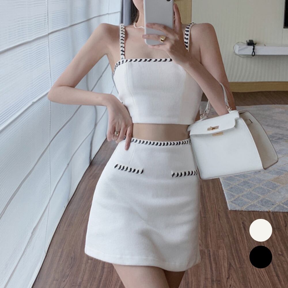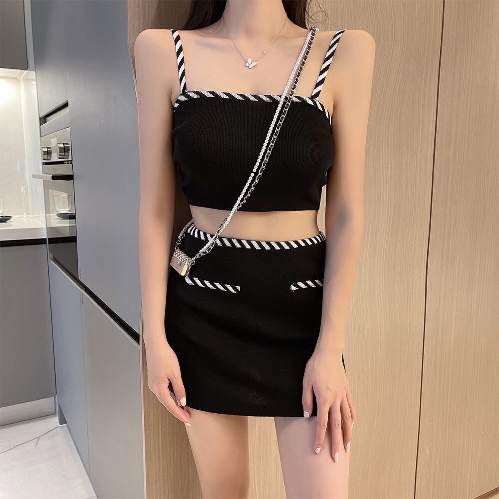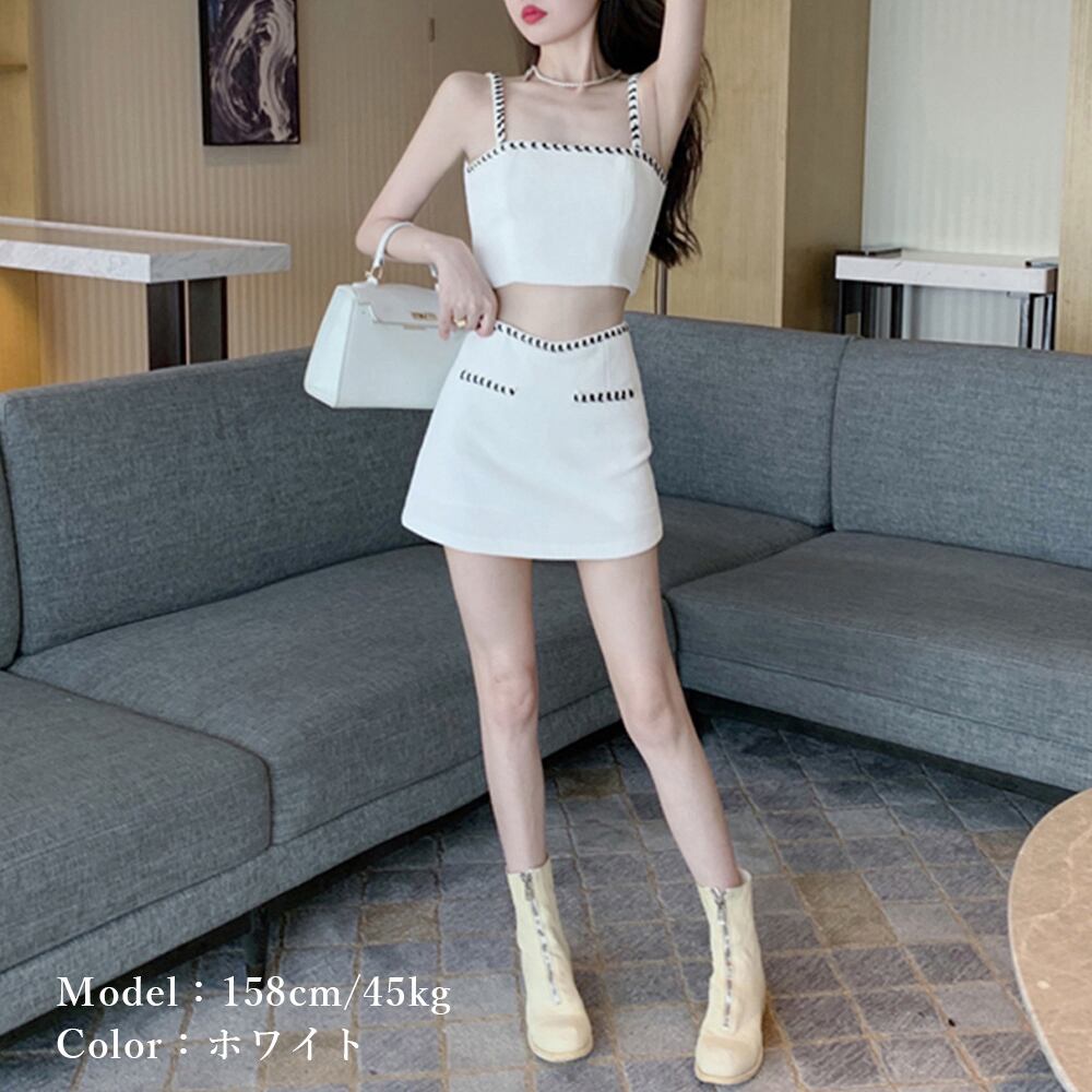 体のラインがきれいに見えるキャミトップス&ミニスカートセット