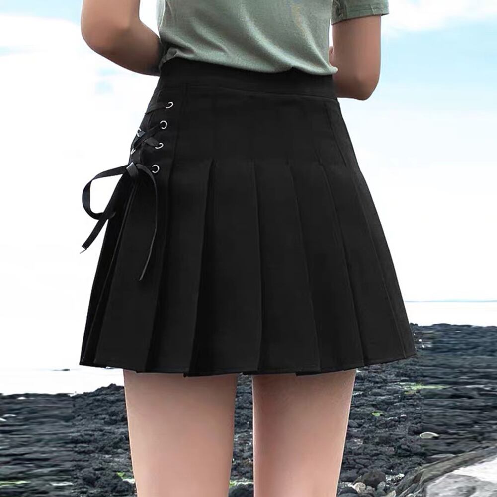 サイドのレースアップが可愛くオシャレなミニプリーツスカート